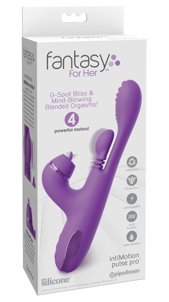 Фиолетовый вибратор с тройной стимуляцией Intimotion Pulse Pro - 24 см