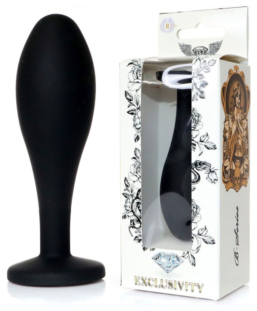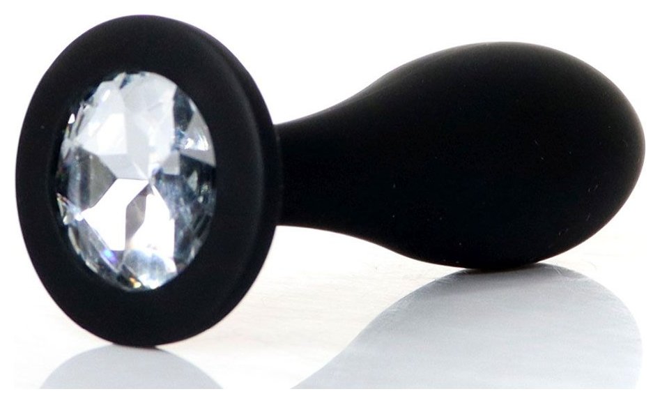 Черная анальная втулка с прозрачным кристаллом - 9,2 см