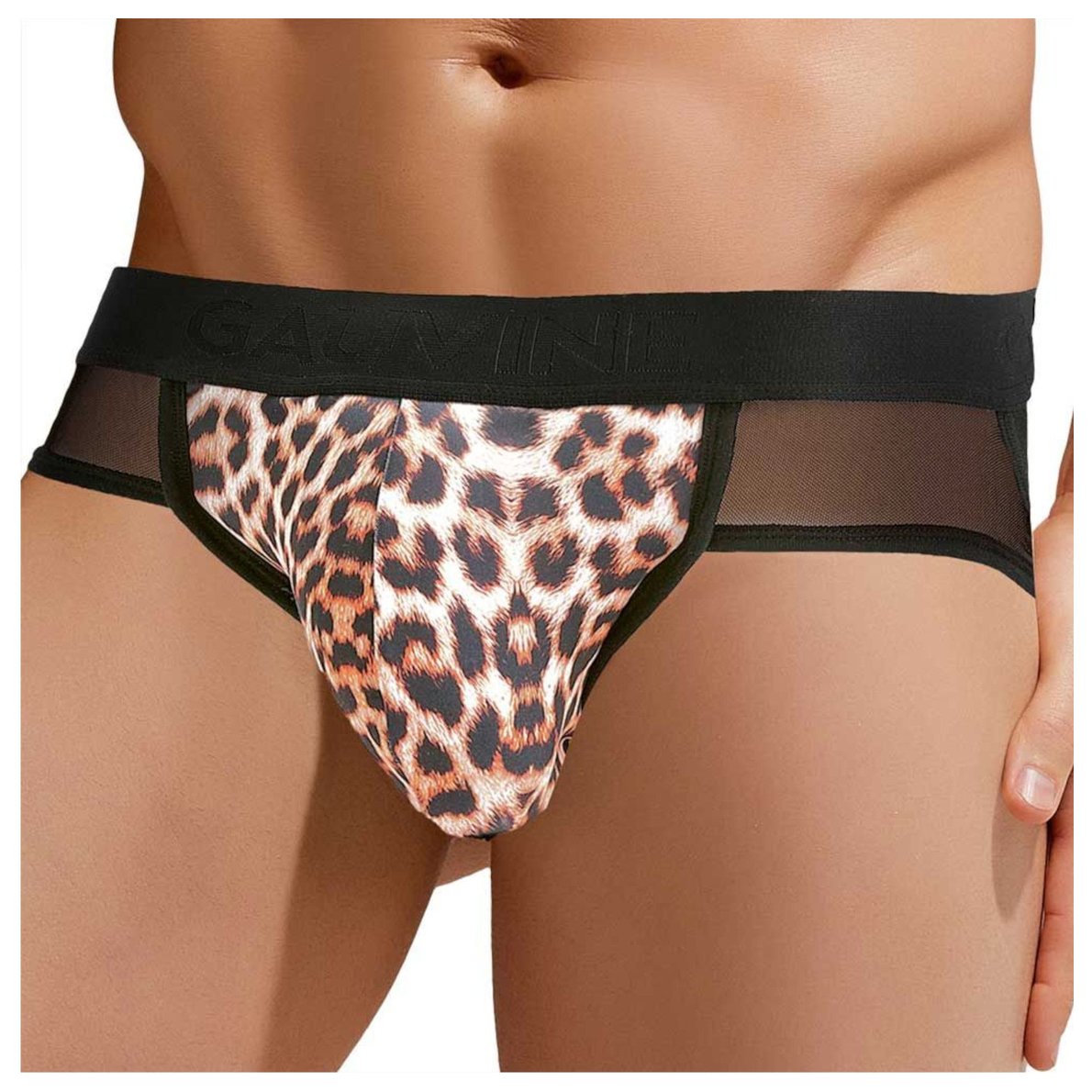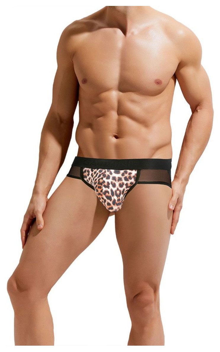 Сексуальные мужские трусы-джоки с леопардовой вставкой по центру.