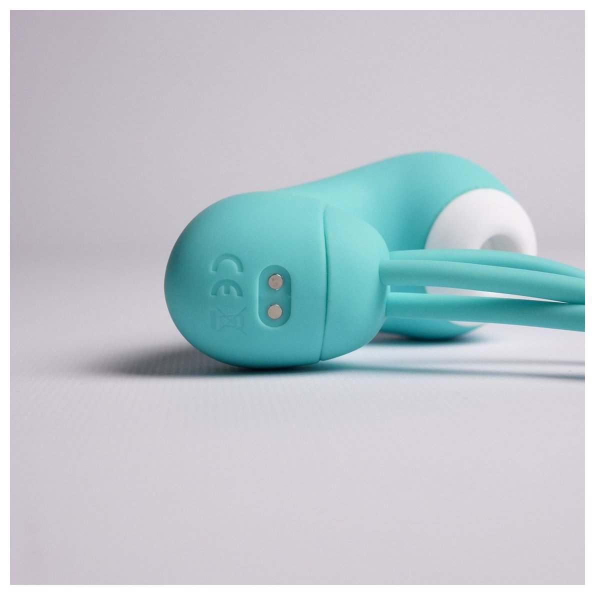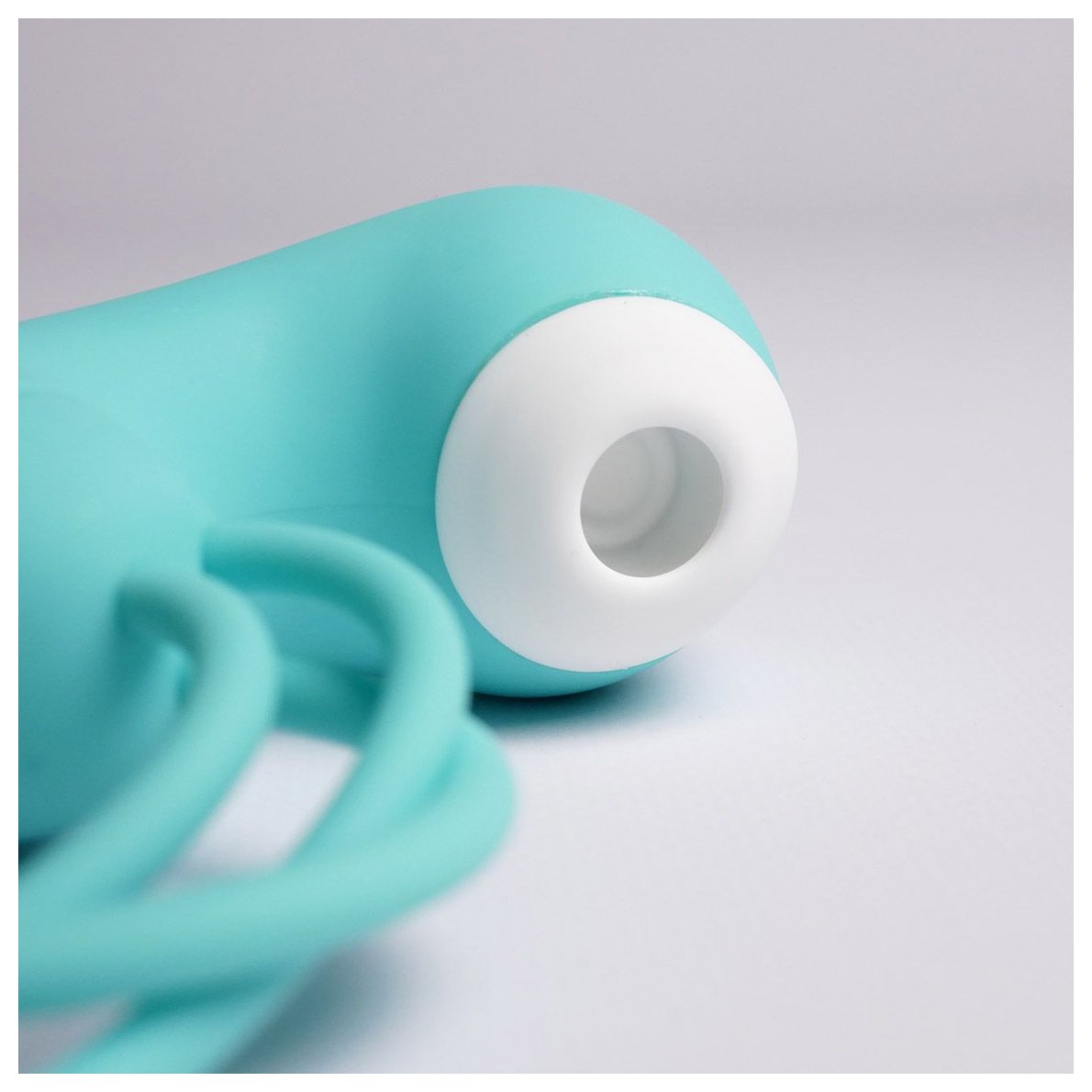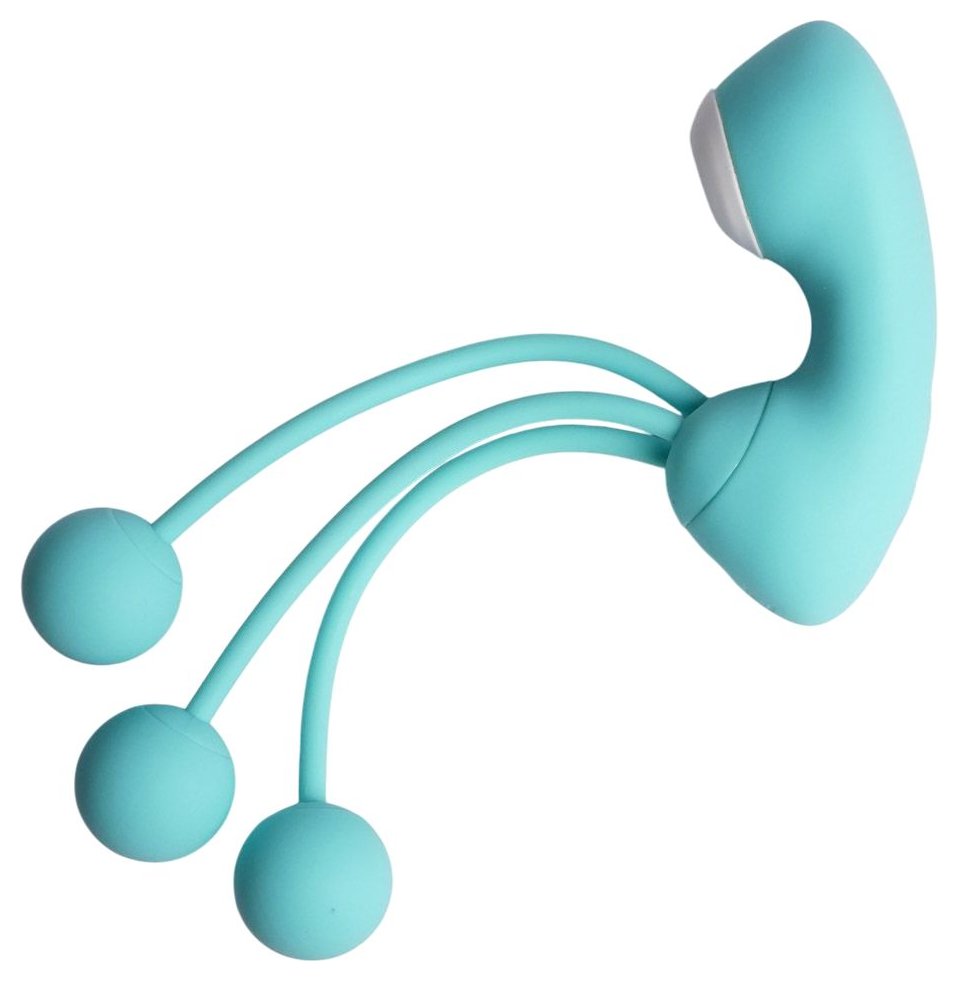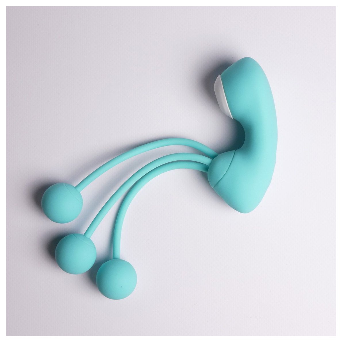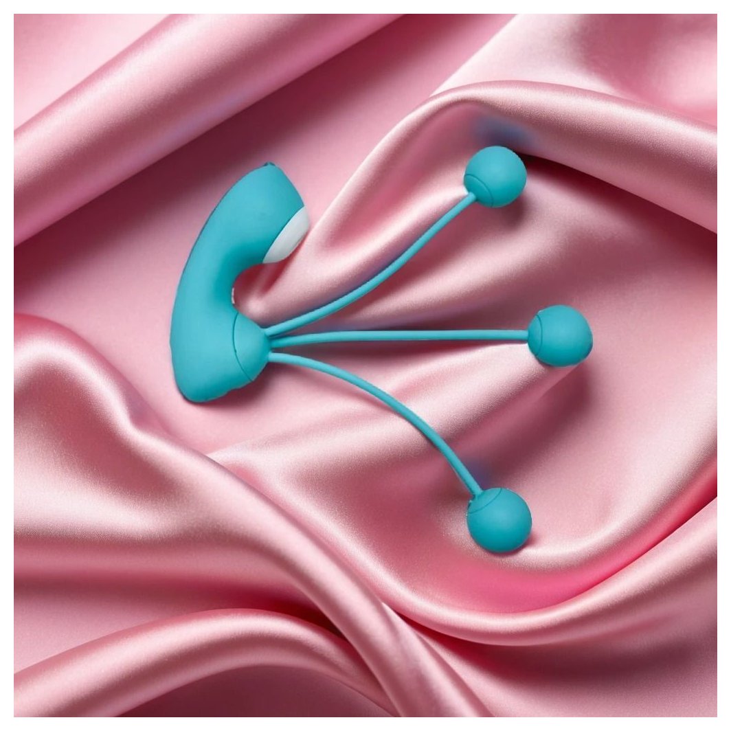 Бирюзовый вакуумный стимулятор клитора с вагинальными виброшариками