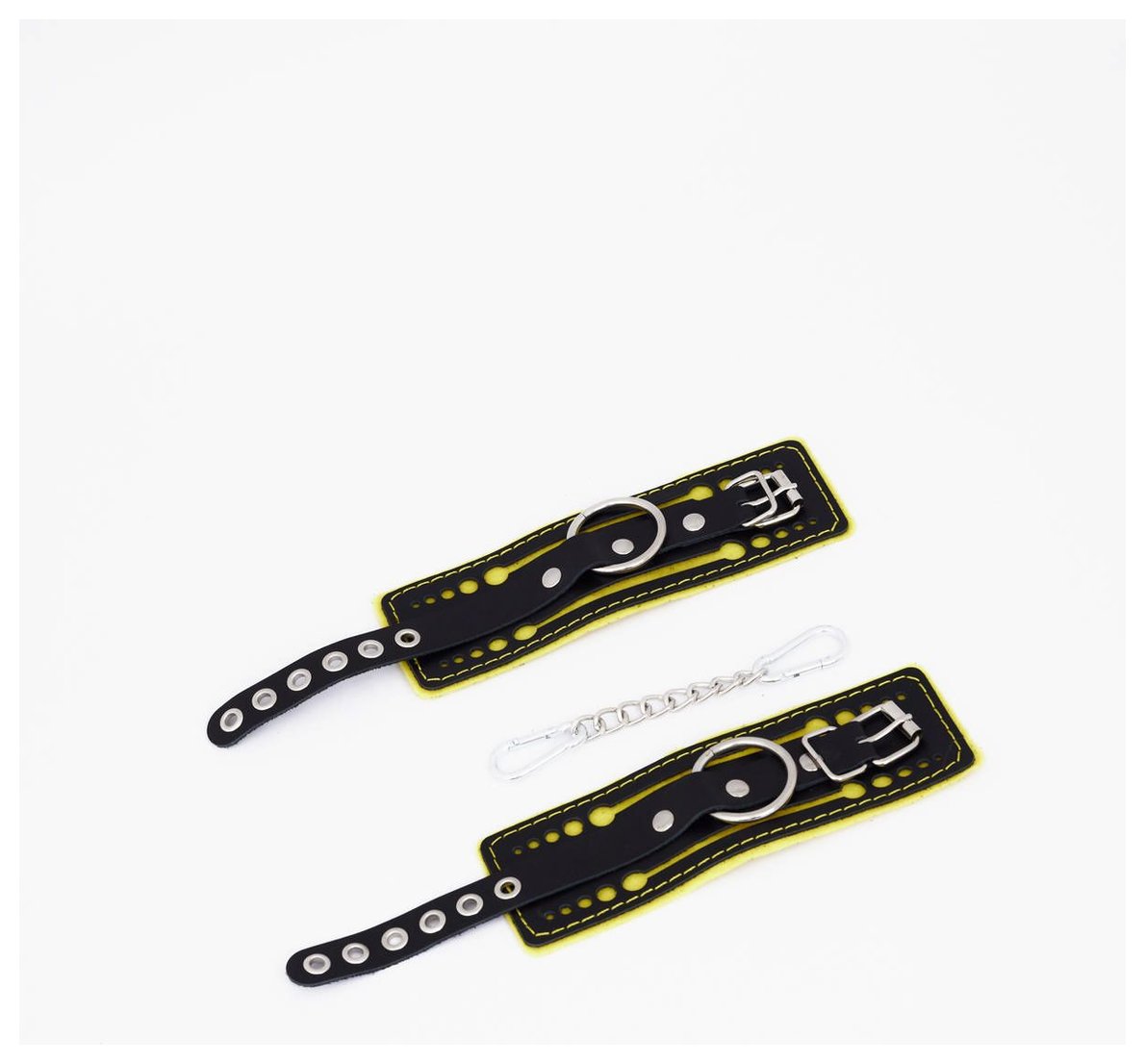 Черно-желтые кожаные наручники с жёлтой строчкой