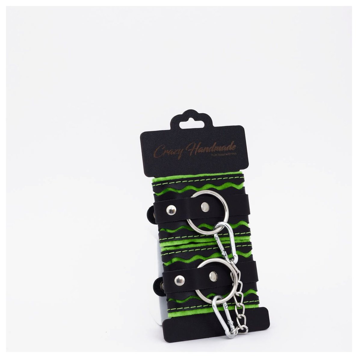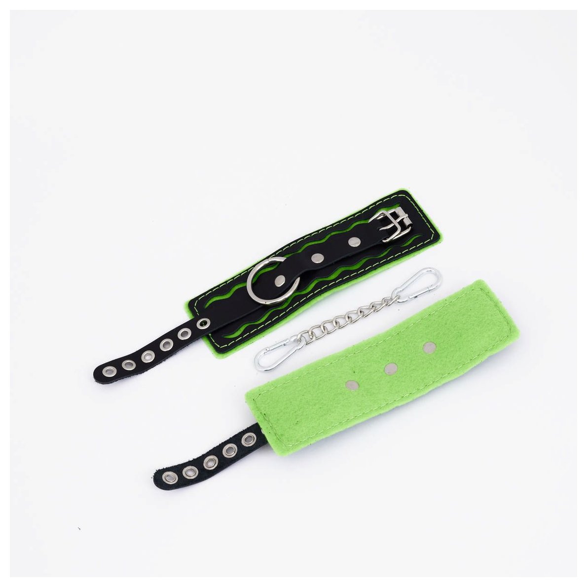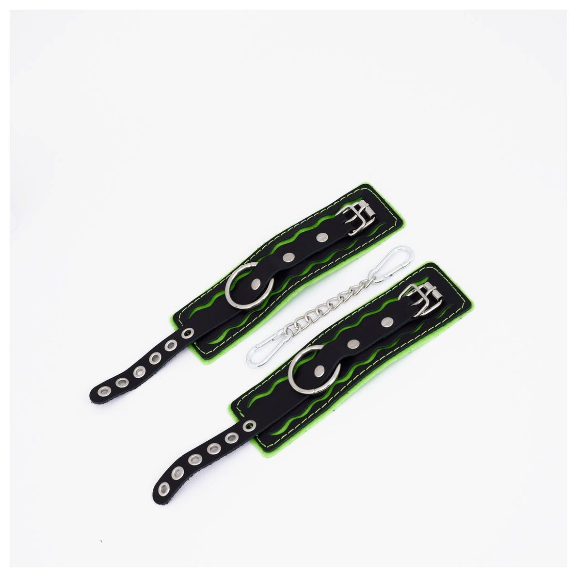 Черно-зеленые кожаные наручники с зеленой строчкой