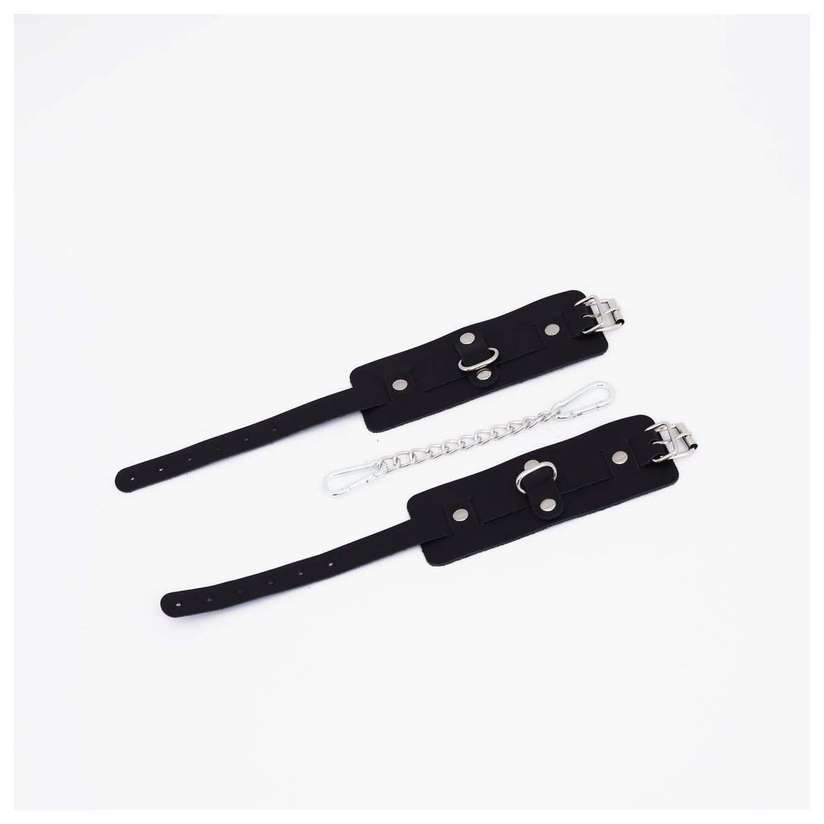 Представляем вам оковы с уникальным дизайном , которые станут вашим идеальным выбором для создания особой атмосферы. Эти оковы — это гармоничное сочетание минимализма, практичности и комфорта, созданное для тех, кто ценит стиль и функциональность. Изделие состоит из двух деталей: основа прямоугольной формы из натуральной кожи черного цвета и ремешок с прочной хромированной фурнитурой в виде овального кольца . Расположение ремешка через прорези основной части не только является стильным декоративным решением, но и служит для точной регулировки размера, обеспечивая идеальную посадку (от 24 до 33 см). В комплект входит прочная соединительная цепочка с двумя надежными карабинами , которые обеспечивают стабильность и контроль. Общая длина изделия составляет 34 см , а каждая манжета имеет размеры 25,5 х 7 см , что делает их универсальными и подходящими для любого типа использования.