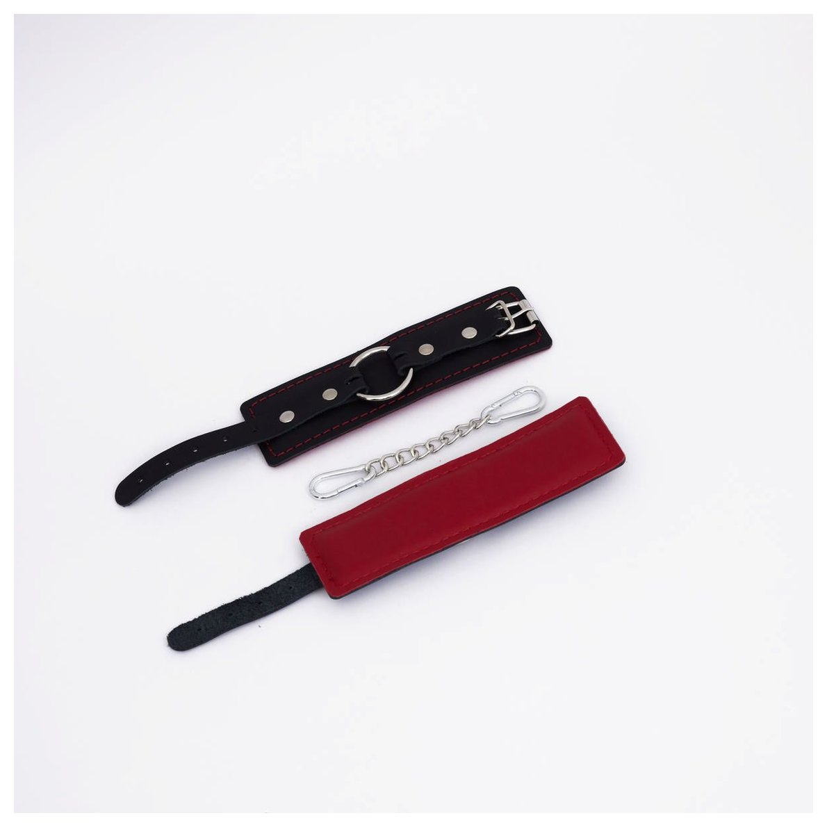 Представляем вам наручники премиум-класса , которые станут вашим идеальным выбором для создания особой атмосферы. Эти наручники — это гармоничное сочетание комфорта, безопасности и стиля, созданное для тех, кто ценит детали и безупречное качество. Изделие состоит из двух слоев натуральной кожи : основной слой – лицевая часть, и подкладка красного цвета с мягким наполнителем , которая обеспечивает комфортное и безопасное использование, не натирая кожу. Декоративная красная строчка добавляет изделию стильный акцент, подчеркивая его элегантность. В комплект входит прочный соединительный элемент в виде цепочки с двумя надежными карабинами , которые обеспечивают стабильность и контроль. Общая длина изделия составляет 25 см , а каждая манжета имеет размеры 15,5 х 6 см , что делает их универсальными и подходящими для любого типа использования (от 15 до 22 см).