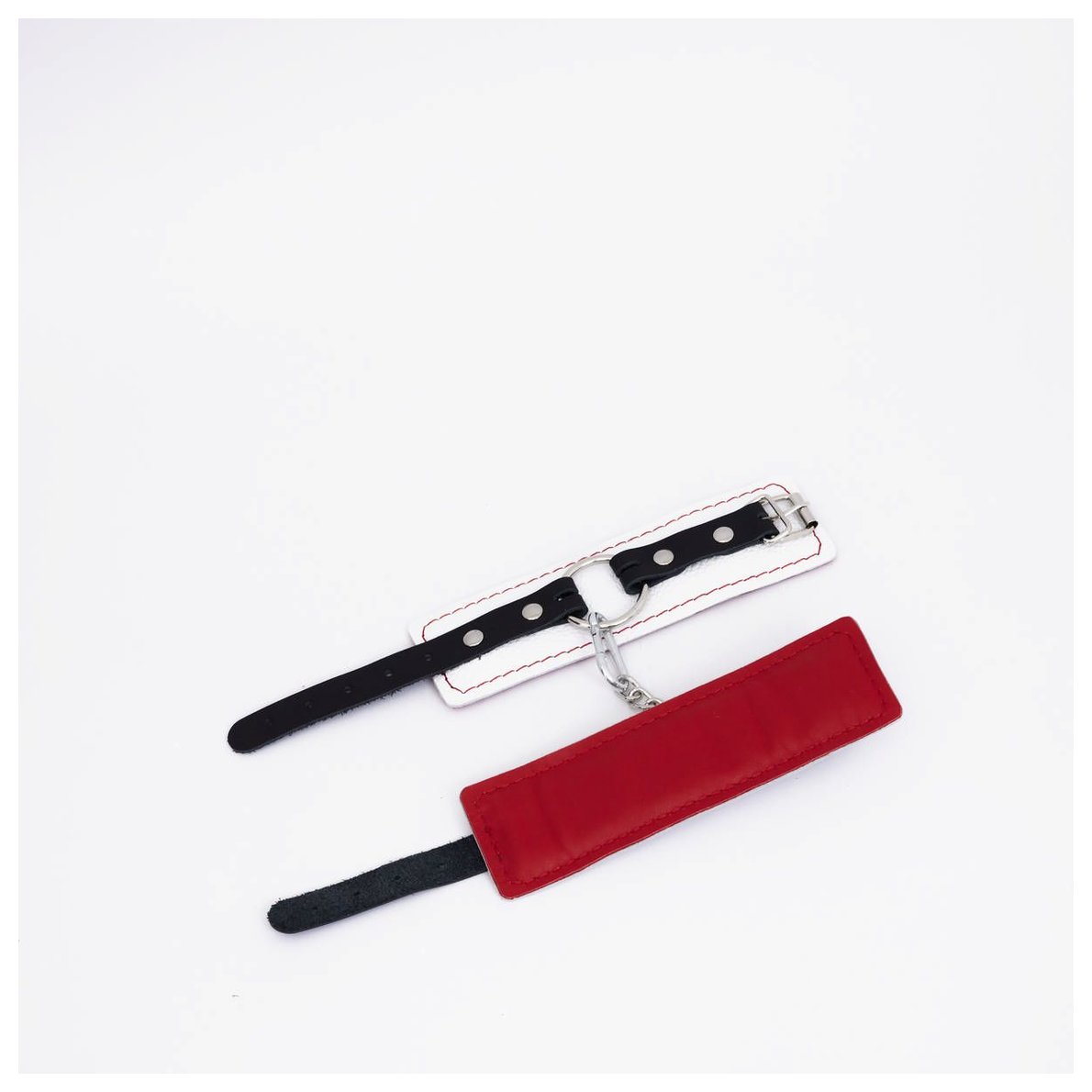 Встречайте наручники с контрастным дизайном , которые станут вашим идеальным выбором для создания особой атмосферы. Эти наручники — это гармоничное сочетание комфорта, безопасности и стиля, созданное для тех, кто ценит детали и безупречное качество. Изделие состоит из двух слоев натуральной кожи : основной слой белого цвета – лицевая часть, и подкладка красного цвета с мягким наполнителем , которая обеспечивает комфортное и безопасное использование, не натирая кожу. Декоративная красная строчка добавляет изделию стильный акцент, подчеркивая его элегантность и игривость. В комплект входит прочный соединительный элемент в виде цепочки с двумя надежными карабинами , которые обеспечивают стабильность и контроль. Общая длина изделия составляет 25 см , а каждая манжета имеет размеры 15,5 х 6 см , что делает их универсальными и подходящими для любого типа использования (от 15 до 22 см).