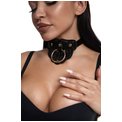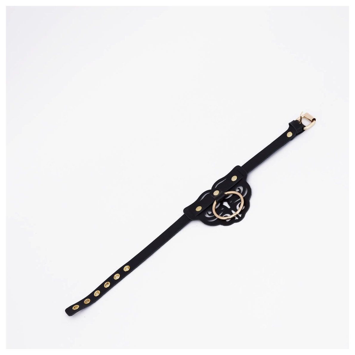 Черный фигурный кожаный ошейник с золотистой фурнитурой
