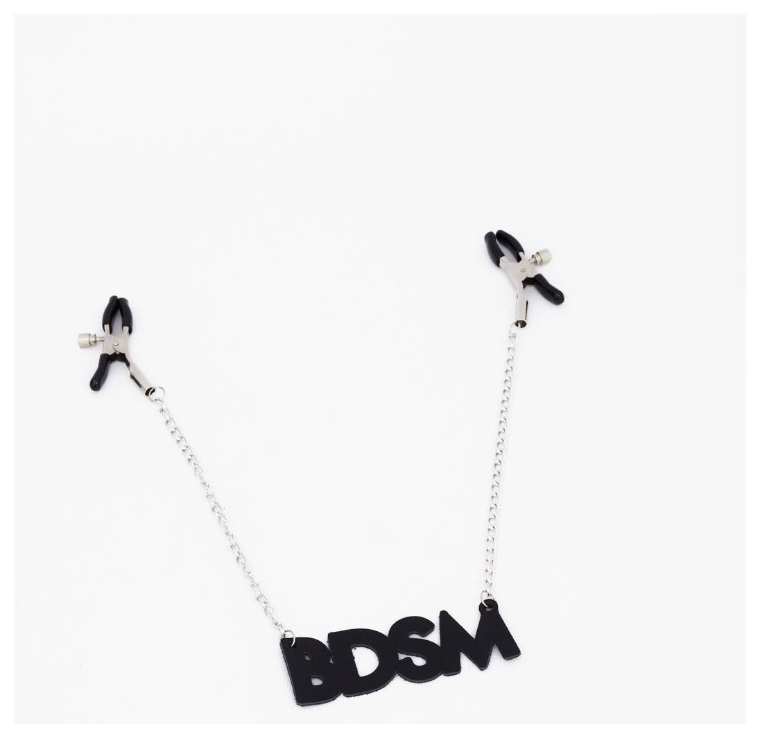 Представляем вам зажимы для сосков с изысканным и провокационным дизайном , которые станут вашим идеальным выбором для создания особой атмосферы. Эти зажимы — это гармоничное сочетание комфорта, функциональности и эстетики, созданное для тех, кто ценит внимание к деталям и стиль. Зажимы оснащены мягкими резиновыми наконечниками , которые обеспечивают комфортное сжатие сосков, не травмируя кожу. Между собой зажимы соединены металлической цепочкой , на которой эффектно расположена надпись BDSM , добавляющая изделию игривости и символизма. Сила сжатия регулируется с помощью подвижного колечка на зубцах , что позволяет настроить интенсивность воздействия под свои предпочтения.