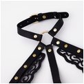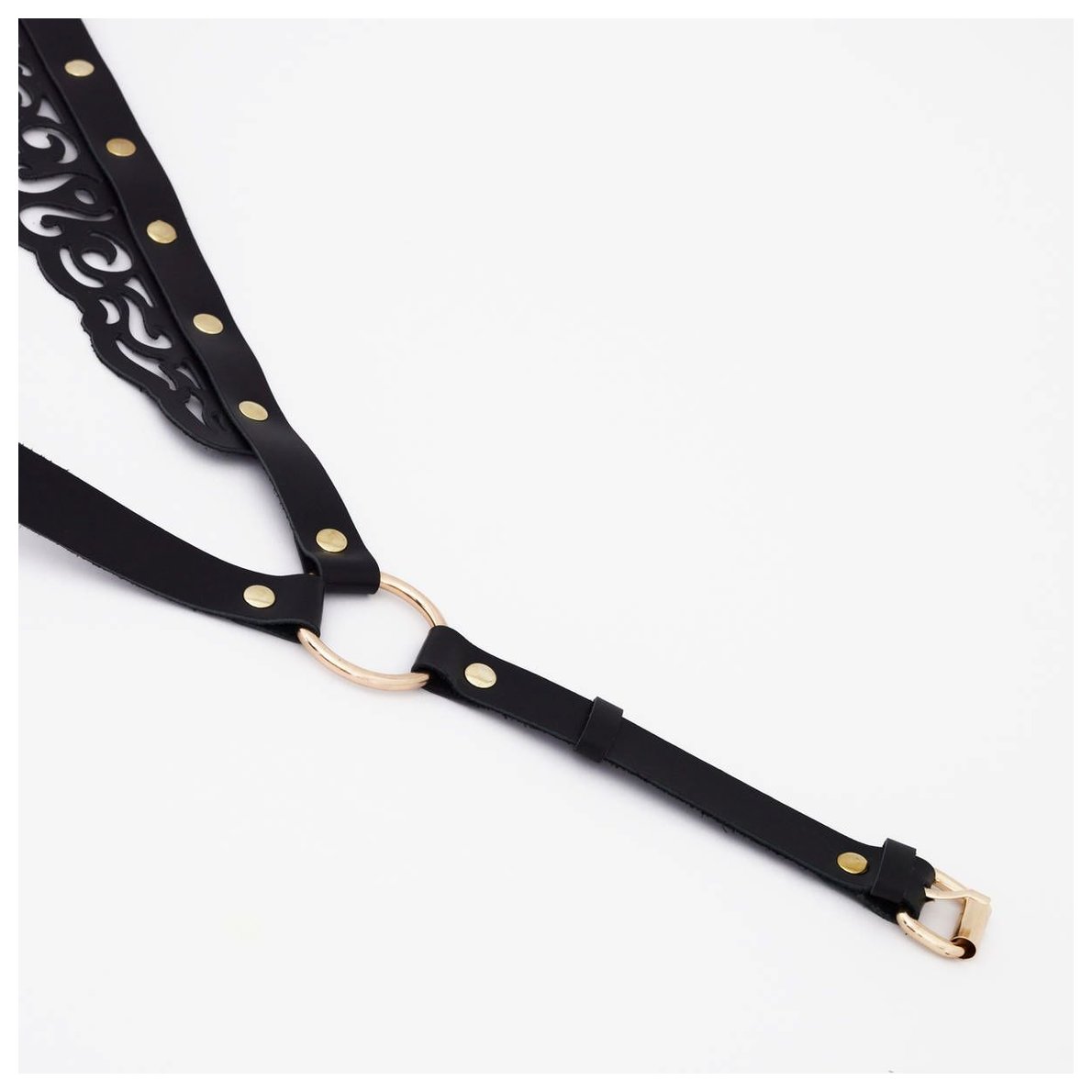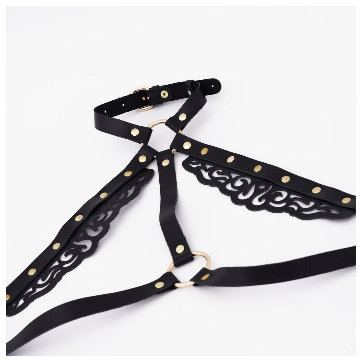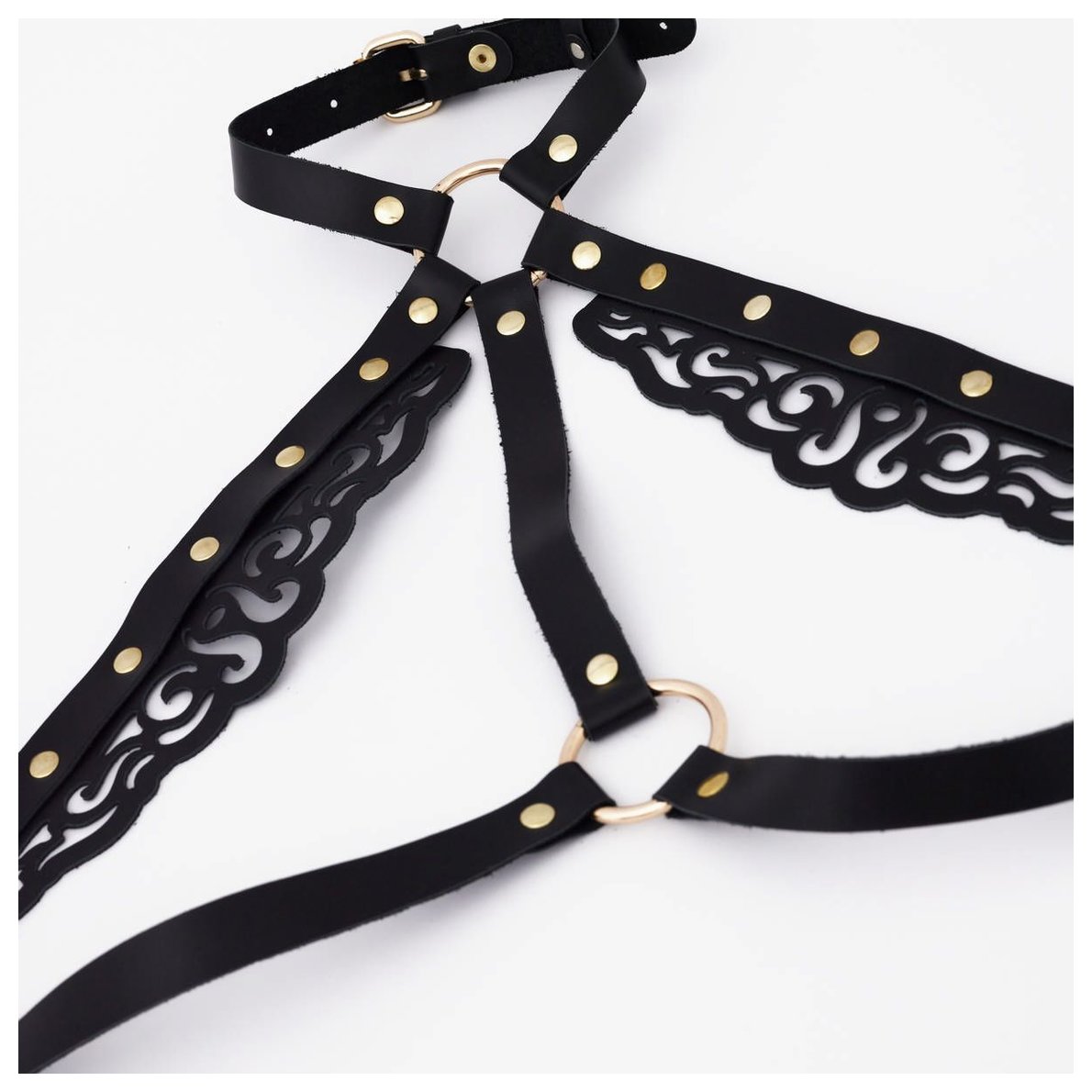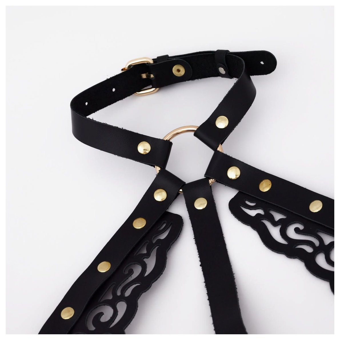 Представляем вам портупею с изысканным дизайном , которая станет вашим идеальным выбором для создания особой атмосферы. Этот аксессуар — это гармоничное сочетание элегантности, комфорта и универсальности, созданное для тех, кто ценит стиль и внимание к деталям. Изделие выполнено из натуральной кожи , что обеспечивает мягкость, долговечность и приятные тактильные ощущения. Портупея дополнена фурнитурой высокого качества из золотистой стали , которая добавляет изделию прочности и благородного блеска. Ремешки соединены между собой кольцами , что делает конструкцию устойчивой и функциональной. Классический дизайн с резными вставками придает портупее нежность, легкость и элегантность, акцентируя внимание на красоте тела. Этот аксессуар не только подходит для любовных игр, но и может стать стильным дополнением к повседневным или вечерним образам, добавляя вашему стилю дерзости и уникальности.