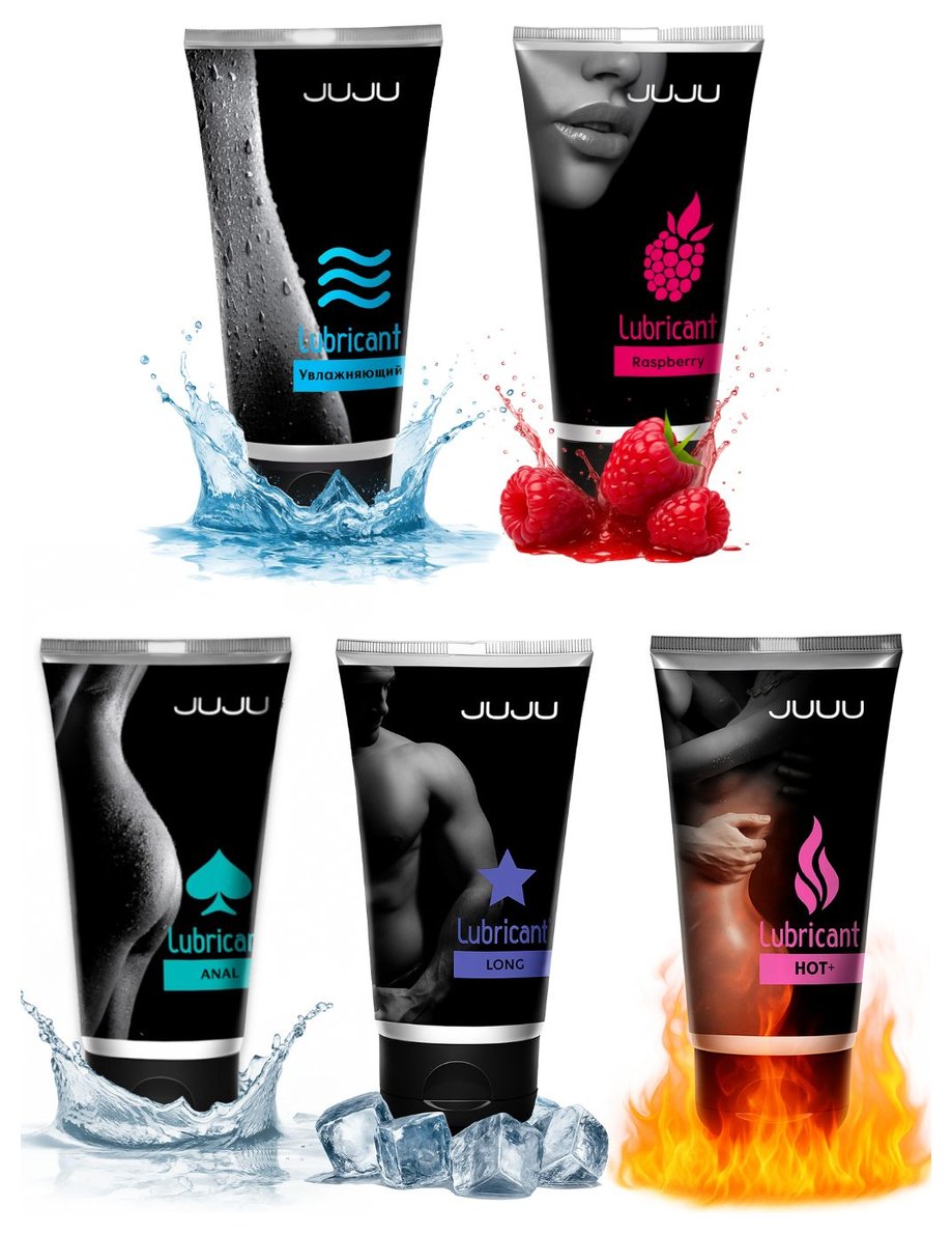 Набор из 5 лубрикантов JUJU (увлажняющий, Hot , Long, Anal, малина)