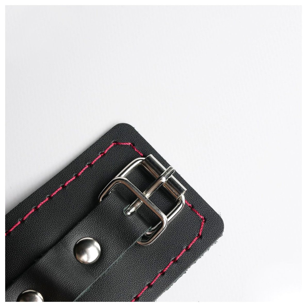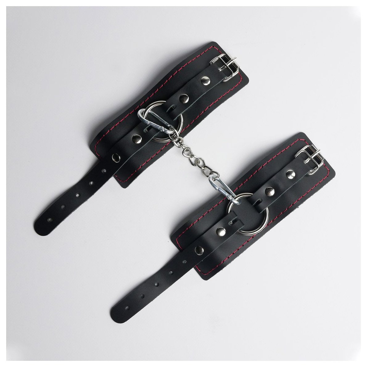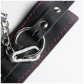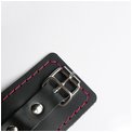 Черные кожаные наручники с красной строчкой