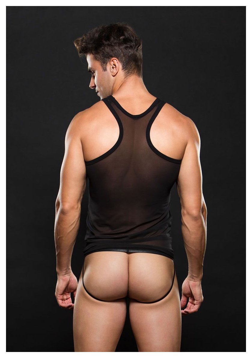Мужской костюм участника штурмовой группы состоит из полупрозрачной майки и трусов: он красноречивее всяких слов расскажет о том, что смелость для вас - не пустой звук . Майка подчеркнет сексуальность и зрительно увеличит плечи, дополнят образ необычные трусы. В комплекте: майка, трусы-джоки.
