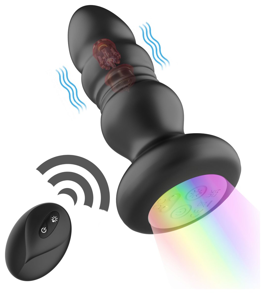 Анальная пробка с вибрацией и фрикционным механизмом, оснащенная дистанционным управлением и LED-подсветкой, создана для усиленной стимуляции и незабываемых ощущений. Игрушка предлагает 9 режимов вибрации и 9 режимов фрикций, которые обеспечивают интенсивные анальные оргазмы. Изготовленная из гладкого, шелковистого силикона, пробка безопасна для тела, а ее мягкость и эргономичный дизайн гарантируют комфорт даже при длительном использовании. Особенности включают LED-подсветку, которая придает интимной обстановке блеск, а также водонепроницаемость, позволяющую использовать пробку в душе или ванной, и магнитную зарядку, обеспечивающую лучшую влагозащиту и долговечность устройства. Время зарядки — 70 минут, а время работы — 50 минут. Управляется пробка с помощью пульта дистанционного управления. Рабочая длина - 10 см.