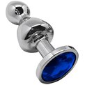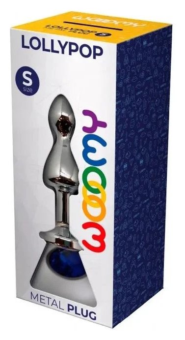 Серебристая анальная втулка Wooomy Lollypop Size S с синим кристаллом