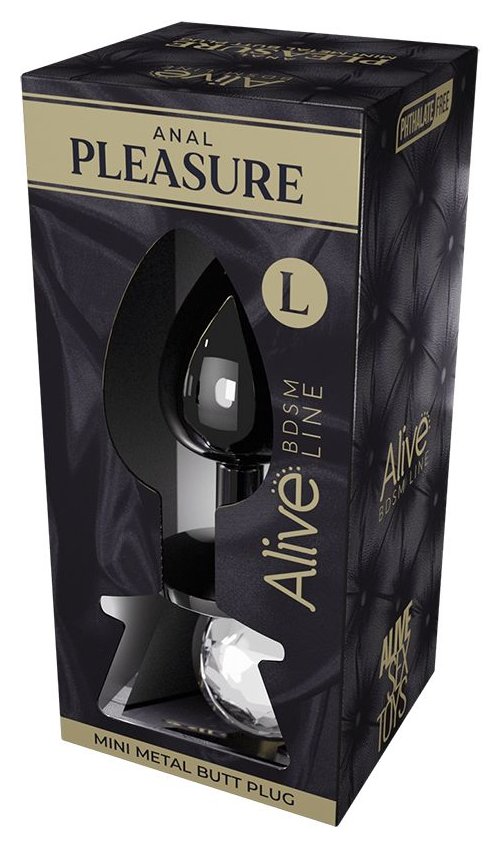 Alive Mini Metal Butt Plug — это металлическая анальная пробка небольшого размера. Она подходит для начинающих и опытных пользователей, а также имеет удобную коническую форму. Анальная втулка украшена цветным кристаллом, который также служит ограничителем для безопасного ношения. Металл хорошо держит тепло, поэтому подойдет любителям температурных игр. Для охлаждения поместите пробку в холодильник, а для того, чтобы нагреть ее используйте водяную баню.