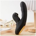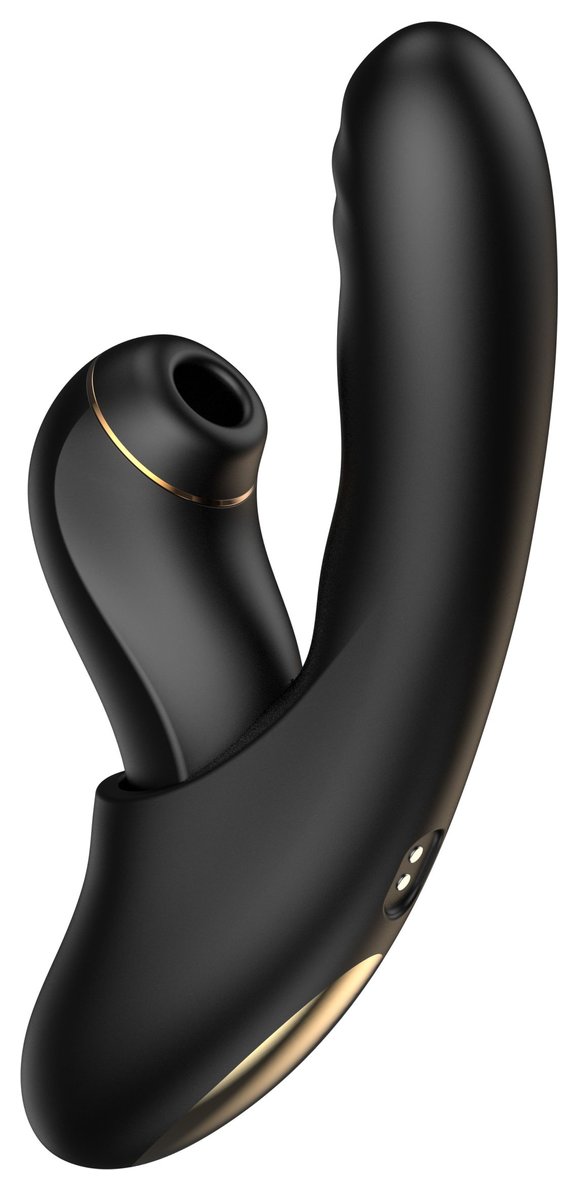 Черный вибратор с возвратно-поступательными движениями и вакуумом Fatima - 19,2 см