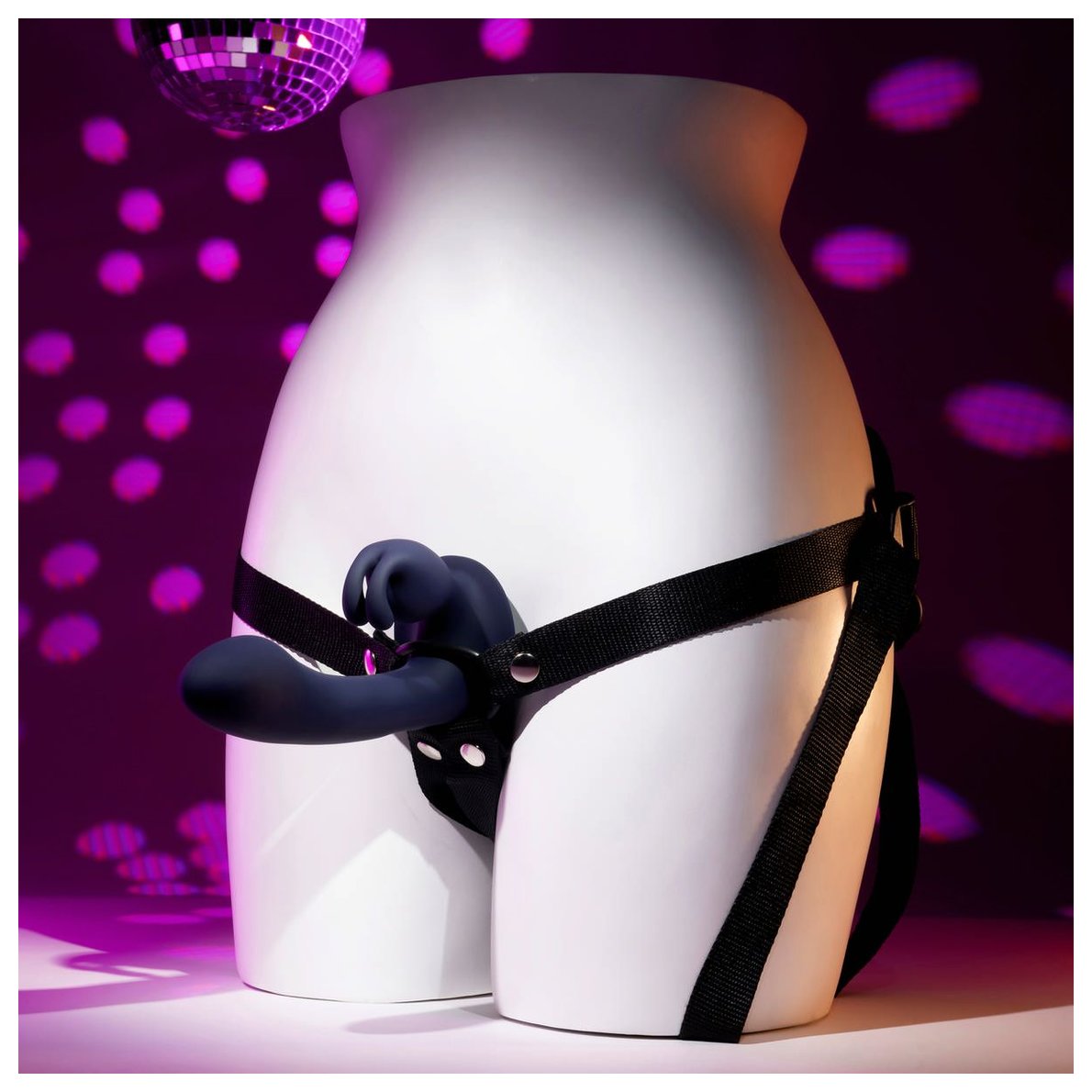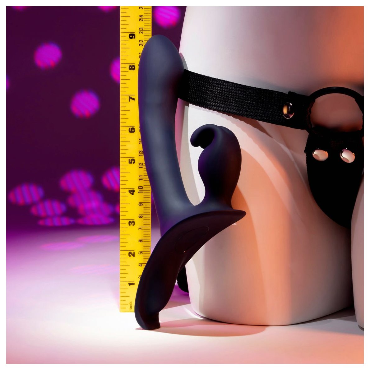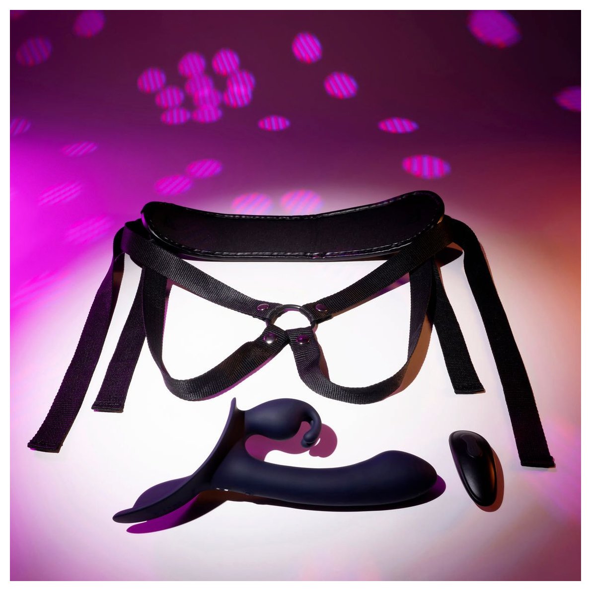 Погрузитесь в океан взаимного наслаждения! Этот инновационный страпон-вибратор с тремя мощными моторами перевернет ваши представления об интимной близости. Уникальная конструкция обеспечивает интенсивную стимуляцию одновременно для обоих партнеров, даря невиданные ранее ощущения. Три зоны мощного удовольствия: Изогнутый основной стержень: идеально повторяет анатомические изгибы для глубокой точечной стимуляции G-зоны или простаты. Максимально реалистичные ощущения! Широкие “зайчьи ушки” клиторального стимулятора: охватывают и мощно вибрируют самую чувствительную зону, даря непревзойденное наслаждение принимающему партнеру. Третий мотор в “ластовице”: уникально! Специальный виброэлемент у основания контактирует с телом активного партнера, обеспечивая приятную стимуляцию и вовлеченность в процесс. Наслаждайтесь вместе в полной мере! Полная гибкость: весь вибратор выполнен из высококачественного, гипоаллергенного силикона (без фталатов и латекса!) и обладает исключительной гибкостью. Он естественно двигается вместе с вашими телами, обеспечивая комфорт и идеальный контакт на протяжении всей игры. Идеальная посадка и контроль: регулируемые ремни на талию и бедра из прочного полиэстера гарантируют надежную и комфортную фиксацию для любого телосложения. Усиленное крепление-кольцо надежно удерживает вибратор, обеспечивая точное позиционирование и уверенное управление процессом. Плотное прилегание без дискомфорта! Мощь и универсальность: 9 скоростей и режимов вибрации (от нежных пульсаций до мощных волн) позволяют найти идеальный ритм для обоих партнеров. Все три мотора управляются одновременно с одного пульта для синхронного наслаждения. Удобное дистанционное управление: компактный пульт (ABS-пластик) с магнитной зарядкой обеспечивает плавное переключение режимов на расстоянии до 4.5 метров. Передайте управление партнеру или контролируйте процесс сами! Современная зарядка: и вибратор, и пульт заряжаются через USB с помощью удобных магнитных кабелей (в комплекте). Водонепроницаемость: водонепроницаемый (IPX7) и погружаемый корпус открывает двери для игр в душе, ванной или просто легкой очистки. Рабочая длина - 14,6 см.