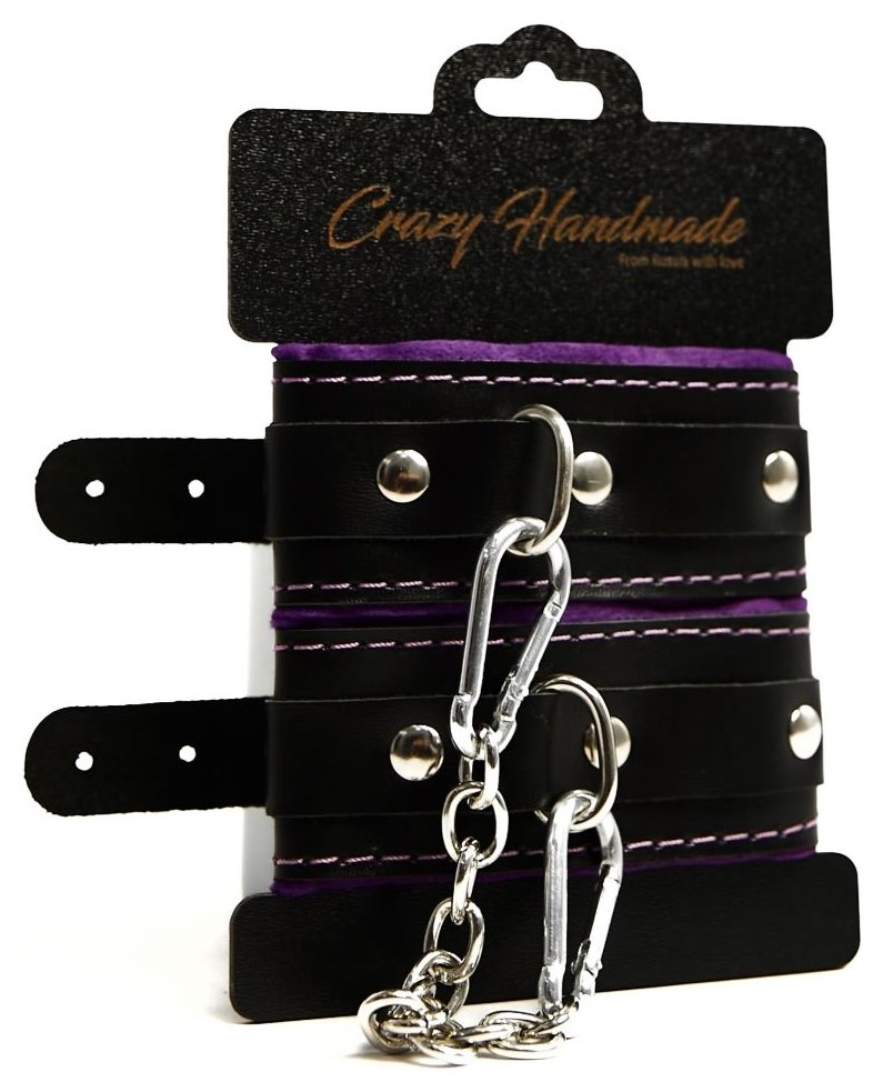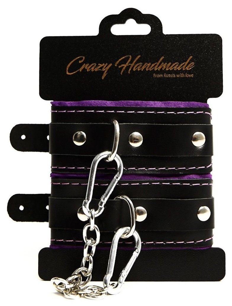Черно-фиолетовые скругленные наручники с мягкой подкладкой