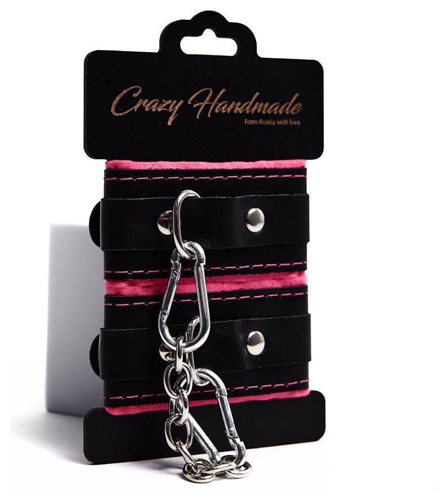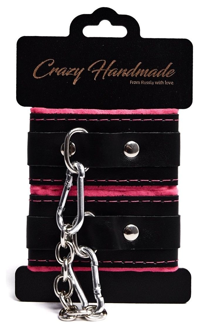 Черно-розовые скругленные наручники с мягкой подкладкой