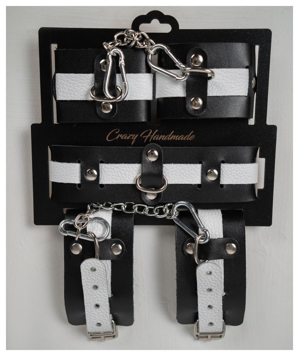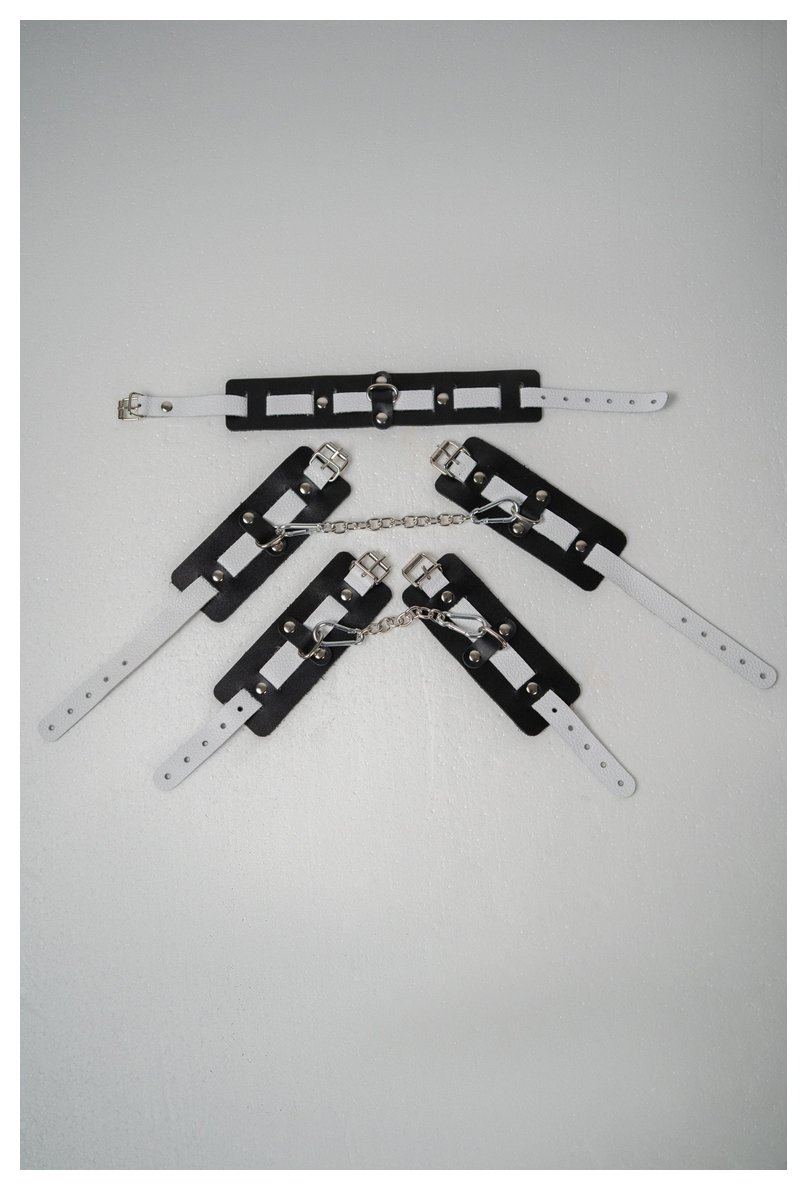 Набор фиксаторов из черной и белой натуральной кожи