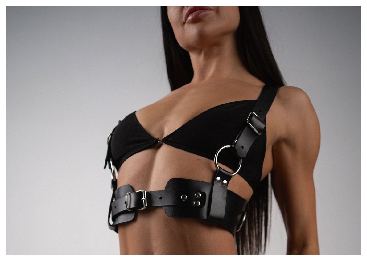 Черная кожаная двусторонняя портупея
