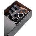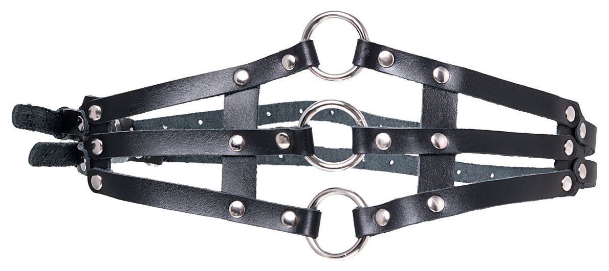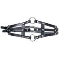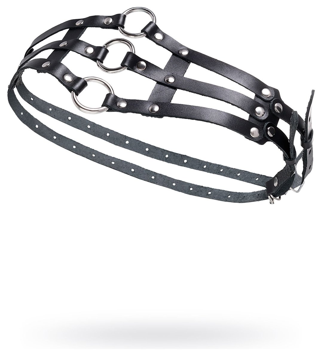 Материал тактильно приятный и износостойкий. Металлические заклёпки по всей поверхности обеспечивают надёжность девайса. 3 стальных кольца по центру добавляют дерзости атрибуту. Идеальная посадка на тело регулируется с помощью металлической застежки. Портупея используется для сексуальных, ролевых БДСМ-игр. А также в качестве стильного аксессуара для тематических вечеринок и фотосессий. Универсальный размер.