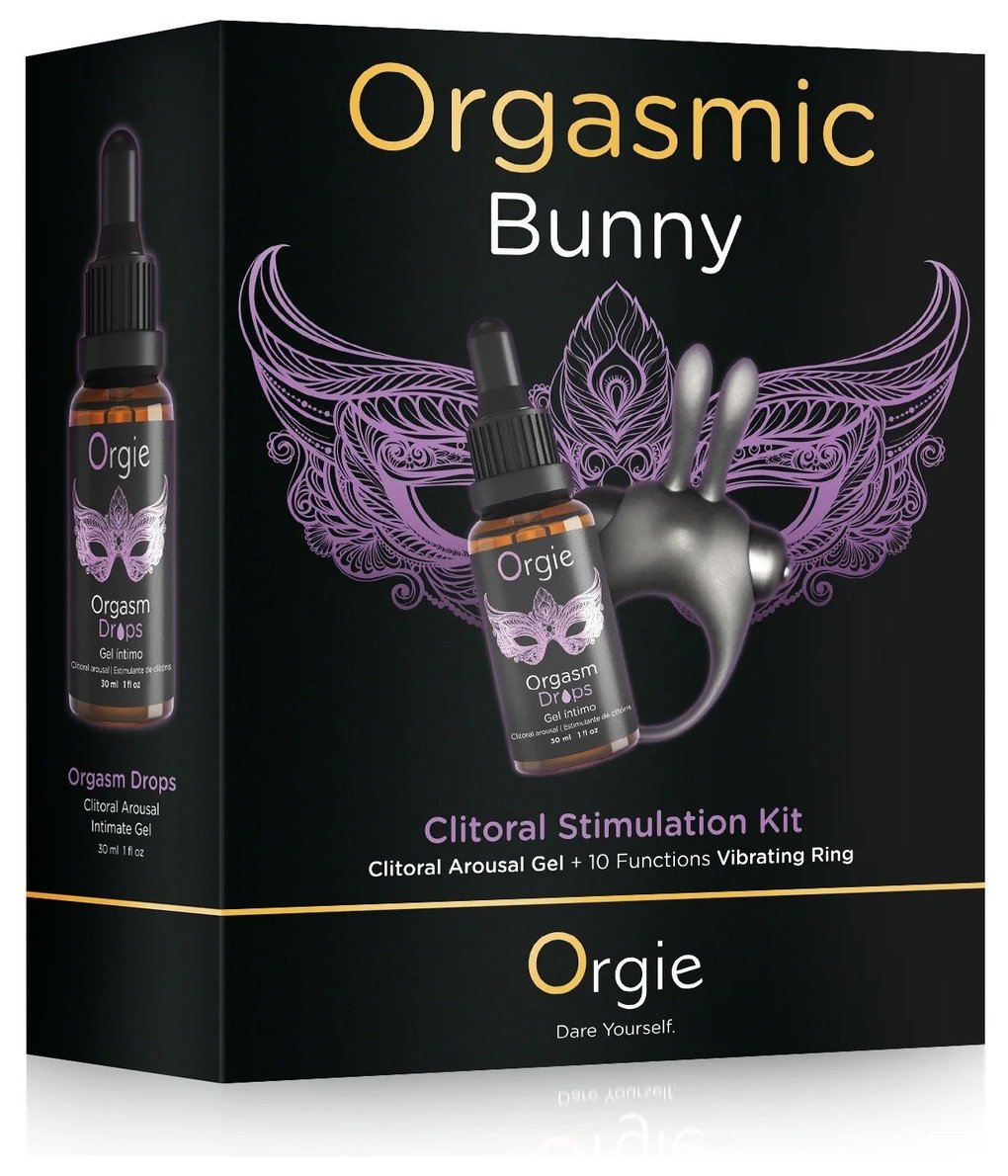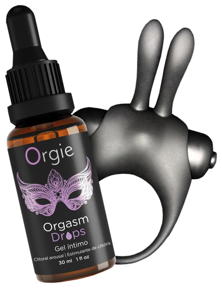 Достигните пика удовольствия с набором Orgie Orgasmic Bunny: легендарный гель Orgasm Drops и мощное силиконовое виброкольцо в форме кролика с 10 режимами вибрации. Компактный размер — гигантские ощущения. Orgasm Drops - гель для возбуждения, усиливает чувствительность клитора для невероятных оргазмов. Виброкольцо-кролик имеет 10 программ стимуляции. Ваш новый союзник в мире интенсивных ощущений. В комплекте: эрекционное кольцо, капли Orgasm Drops (30 мл.).