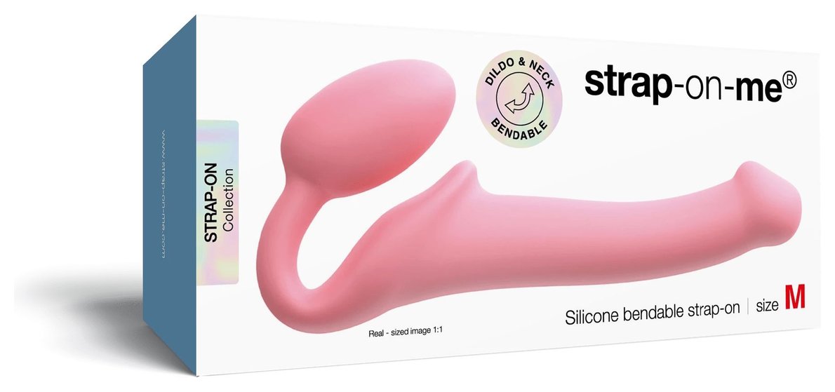Розовый безремневой страпон Strap-on-me Semi-Realistic Bendable Strap-On size M