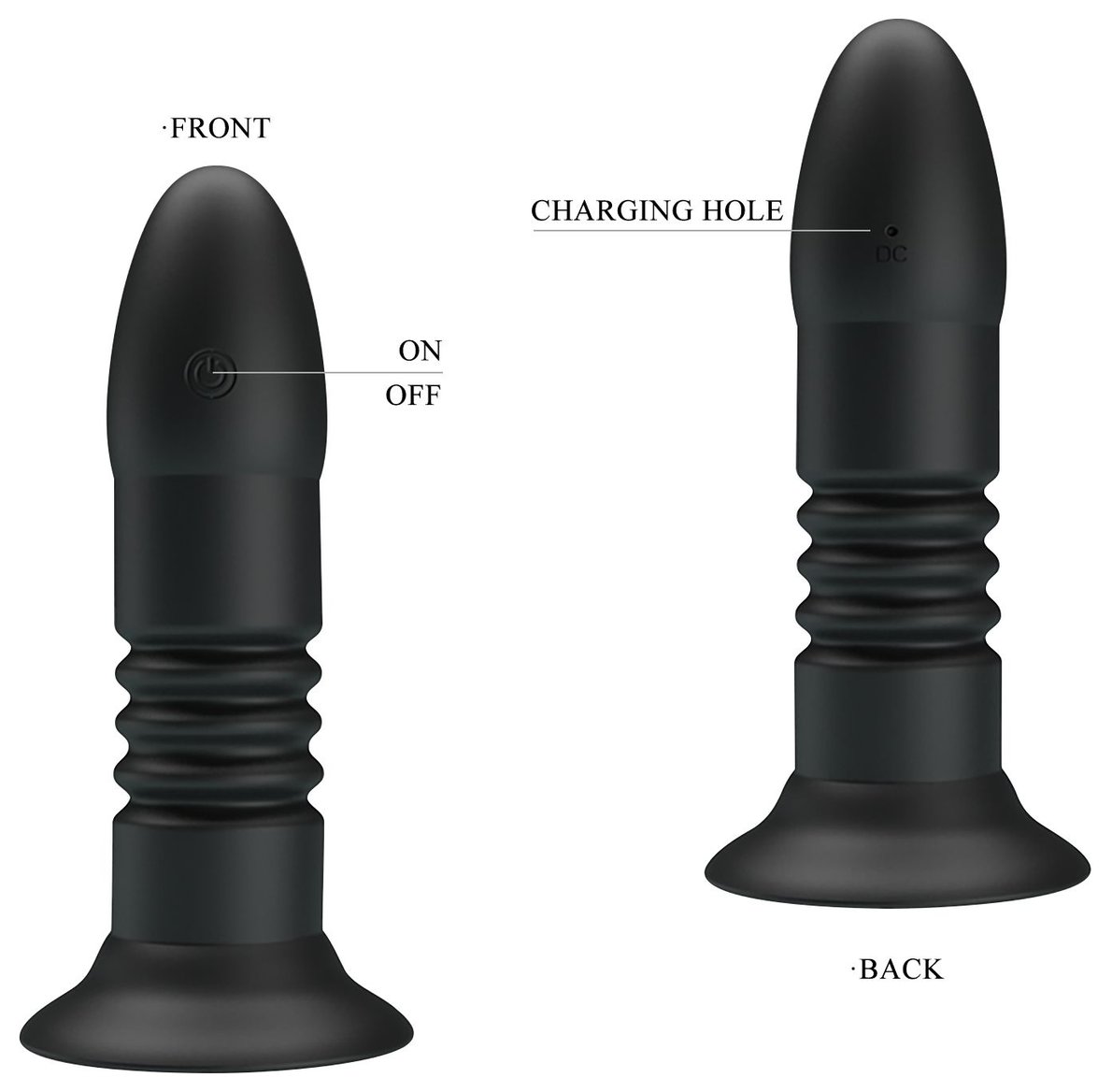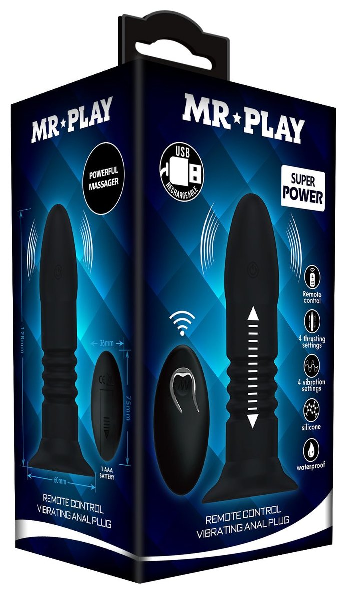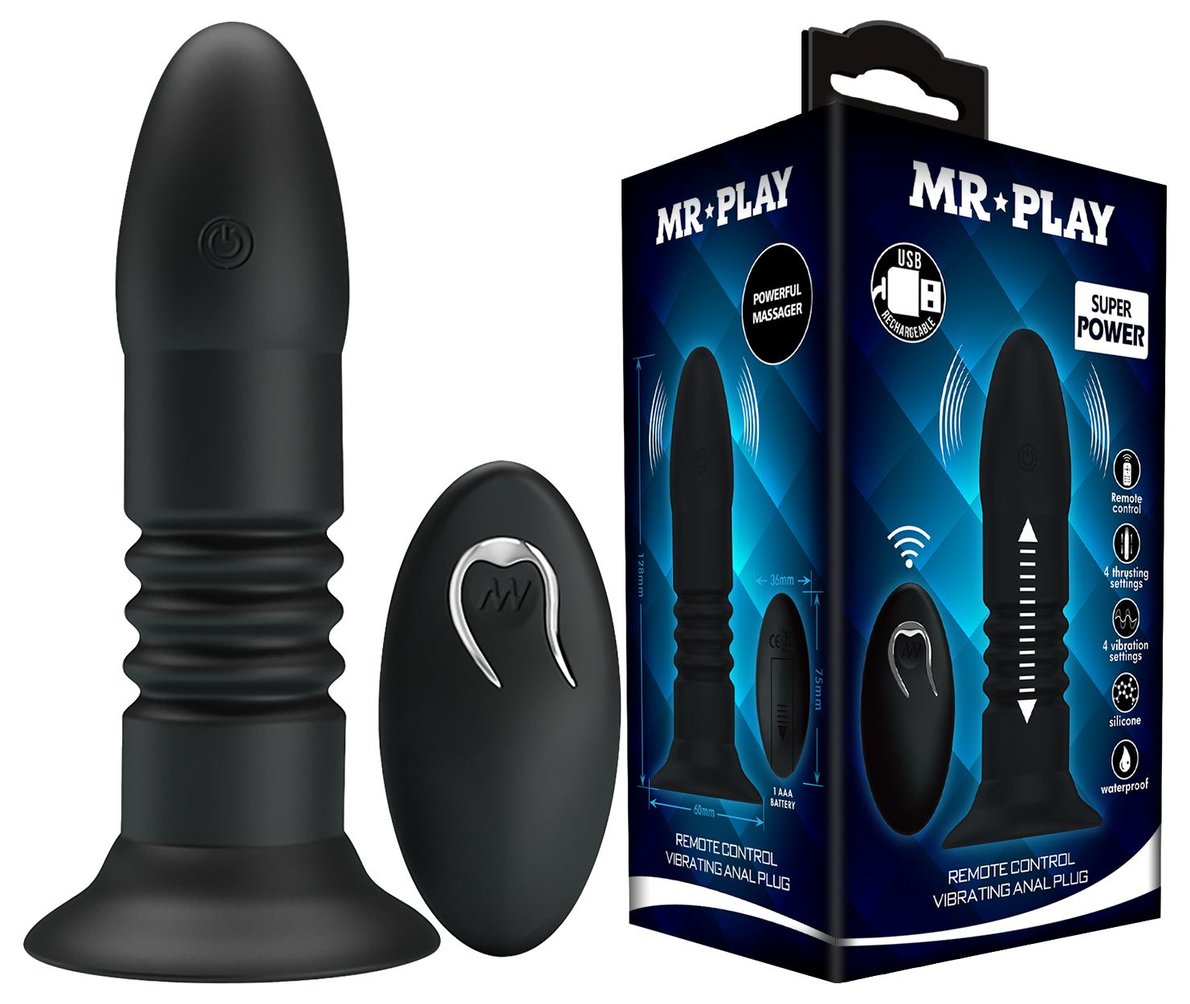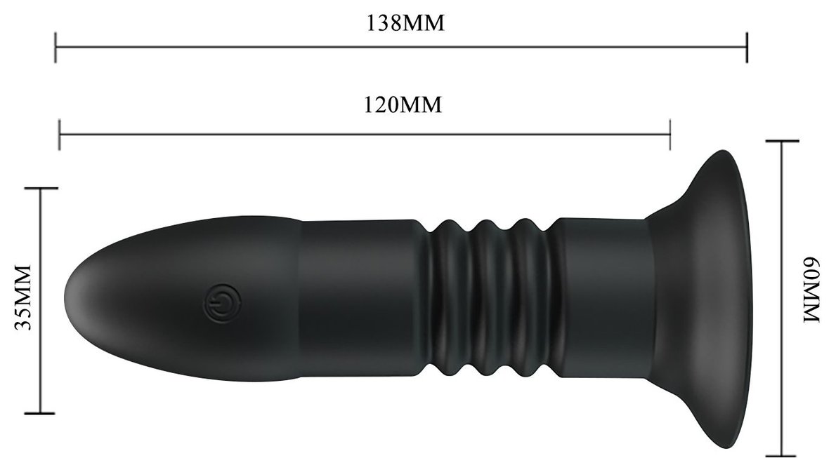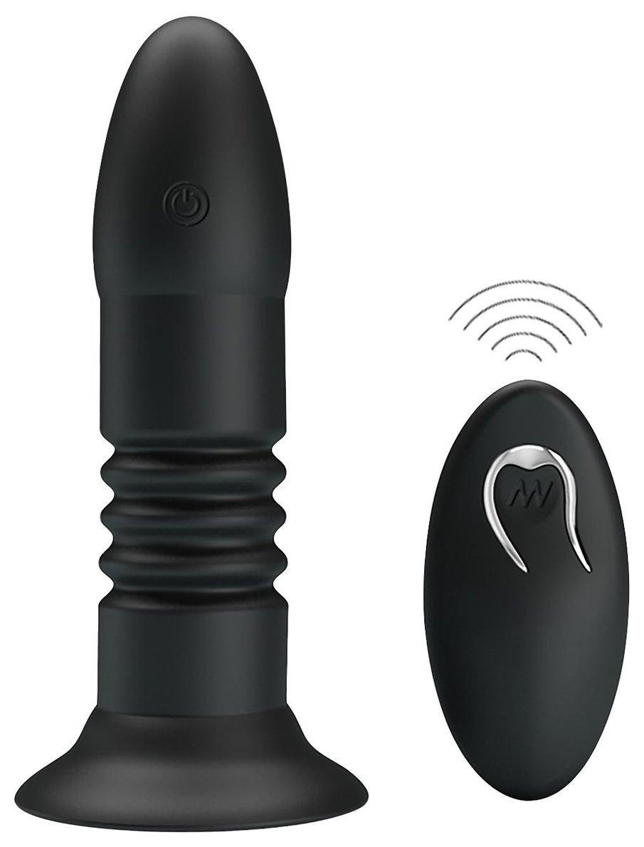 Анальный стимулятор из силикона, обладающий 4 режимами вибрации и функцией поступательных движений вверх-вниз. Удобно управляется дистанционным пультом (режимы так же переключаются на самой игрушке). Имеет устойчивое основание-присоску, которое является так же и ограничительным основанием для безопасного использования. Рабочая длина - 12 см.