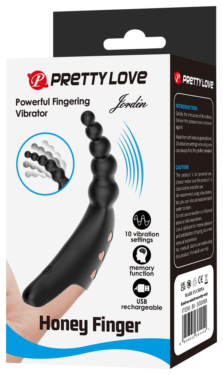 Черный вибратор на палец Jordin. Кончик выполнен в виде цепочки шариков. Перезаряжаемый.