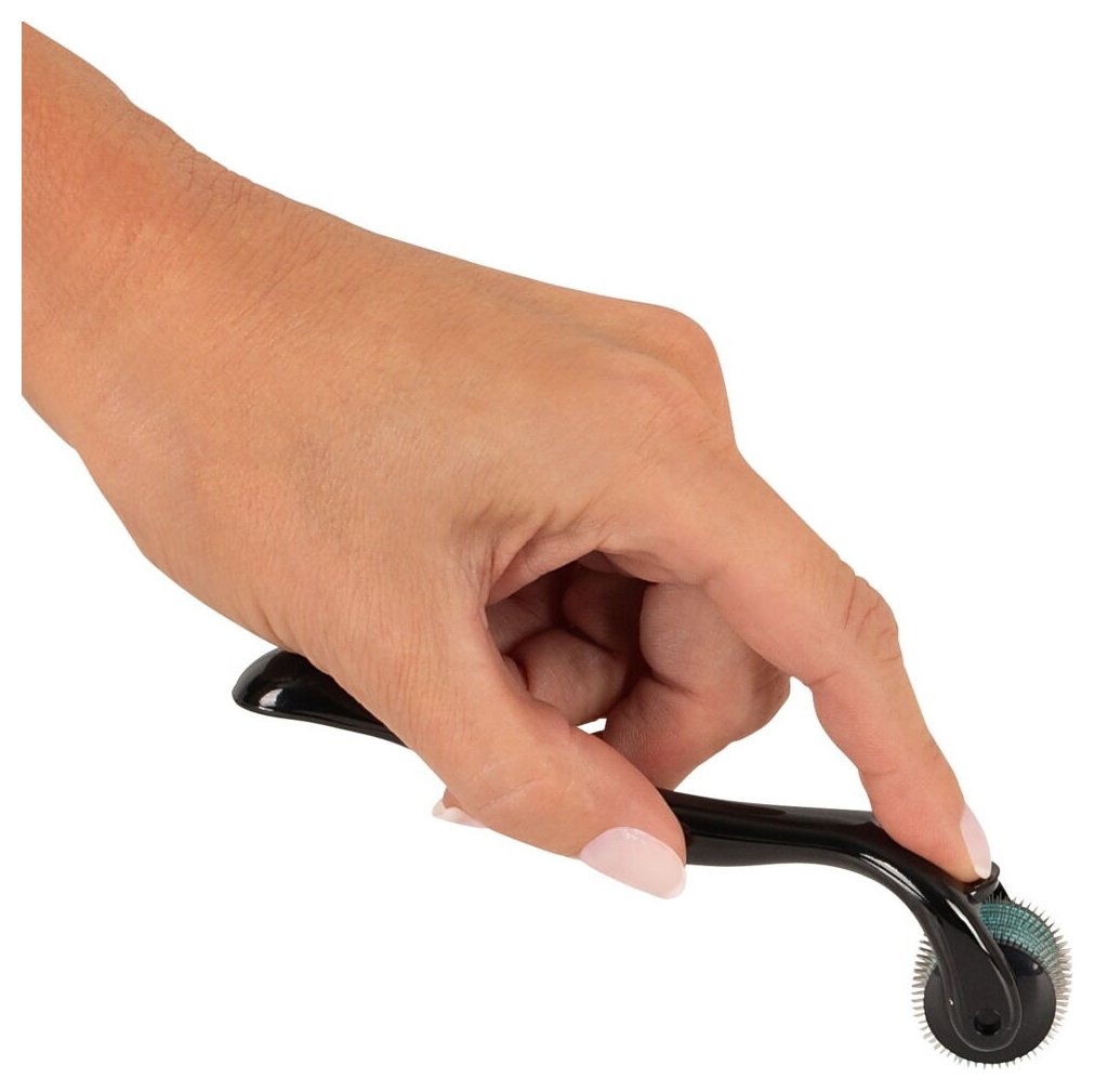 Маленькое, удобное в использовании черное колесо Вартенберга из коллекции fetish. Оно прокатывается по коже нежно или с большим нажимом и обеспечивает либо нежное стимулирующее ощущение, либо интенсивную, приятную боль. 9 колес с 250 маленькими шипами можно использовать по всему телу. Это многорядное колесо легко держать благодаря ее короткой волнистой ручке, а также легко направлять по телу. Колесо изготовлено из нержавеющей стали и поликарбоната, что означает, что оно очень прочное и легко чистится. Диаметр колеса - 2,4 см. Длина шипов - 2 мм.