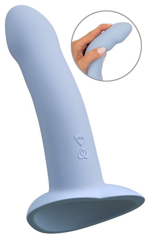 Голубой вибростимулятор на присоске Heart Guy - 17 см