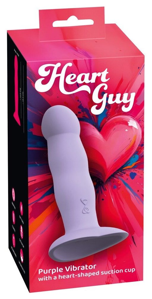 Нежный фиолетовый вибратор Heart Guy с мощной присоской в форме сердца. Он имеет возбуждающие волны, бархатисто-мягкий и имеет выраженный стилизованный ствол. Также он обладает 10 разнообразными и очень мощными режимами вибрации, которые идеально подходят для любого желания. Режимы можно легко регулировать нажатием кнопки! Мощный вибратор может прочно прикрепляться к любой гладкой поверхности (например, к плитке) благодаря своей мощной присоске в форме сердца – для удовольствия без помощи рук. Heart Guy также можно использовать в ванне или душе, так как он водонепроницаем! Прочный вибратор изготовлен из бархатисто-мягкого жидкого силикона, что означает, что его легко вводить, и он скользит почти самостоятельно. Он также может адаптироваться к любой позиции, так как он удивительно гибкий. Рабочая длина - 17,5 см.