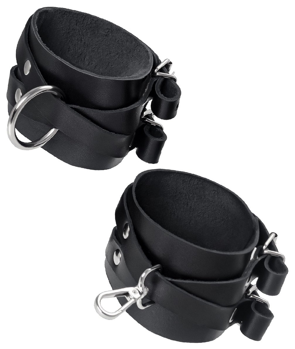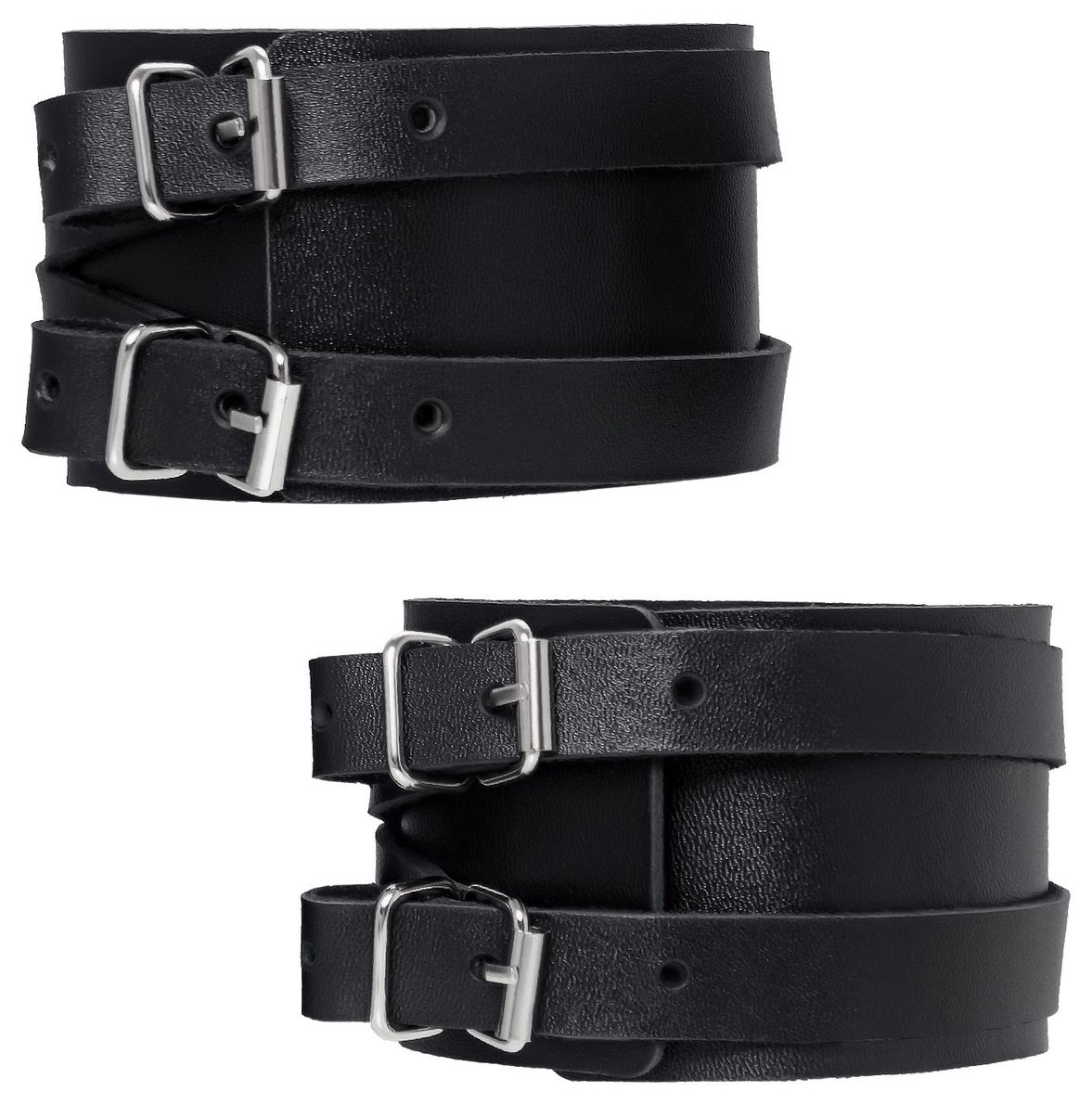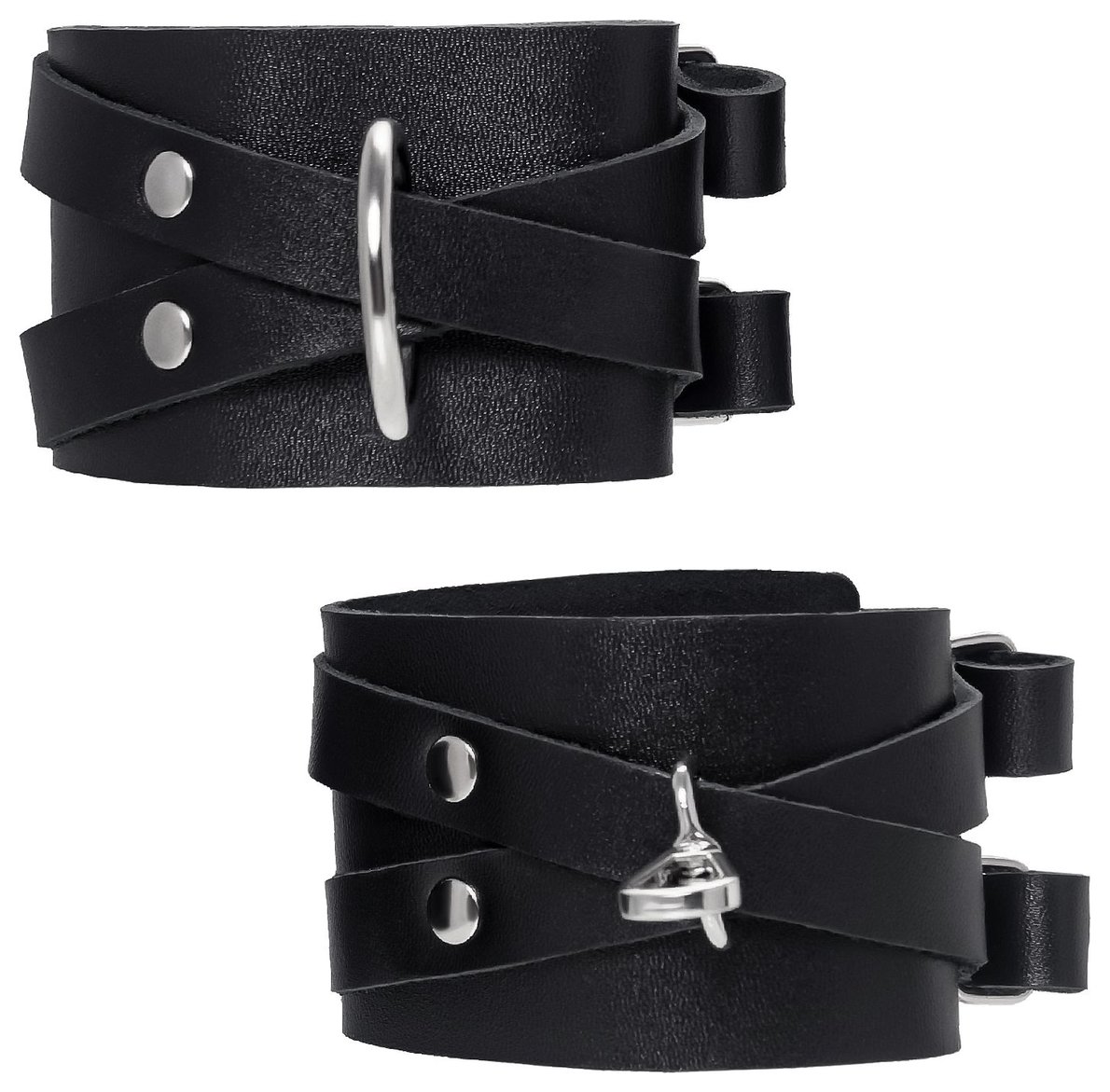 Черные кожаные оковы с двумя перекрёстными ремешками