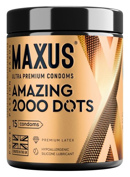 Точечные презервативы MAXUS 2000 Amazing Dots с железным кейсом - 15 шт