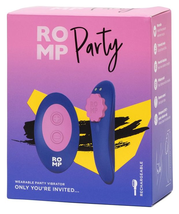 Откройте для себя интимные приключения в любом месте с ROMP Party — вибратором для трусиков, который идеально подходит для пикантных игр в одиночестве или с партнёром. Этот компактный и незаметный вибратор оснащён 7 уровнями интенсивности, которые легко регулируются с помощью пульта дистанционного управления на расстоянии до 10 метров. Закрепите устройство снаружи трусиков с помощью магнитного зажима, который гарантирует комфортную посадку и надежную фиксацию. Вибратор выполнен из безопасного для тела силикона, а также обладает водонепроницаемостью класса IPX7, что позволяет использовать его в любых условиях — даже в воде. И игрушка, и пульт имеют встроенные перезаряжаемые аккумуляторы. Для вибратора достаточно 80 минут, чтобы обеспечить час непрерывной работы. Пульт заряжается за 60 минут и работает до 5 часов.