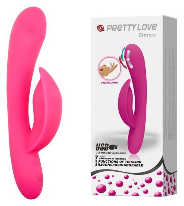 Розовый перезаряжаемый вибромассажер Sidney с функцией поглаживания - 19,5 см