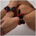 Наручники из натуральной кожи с декоративным элементом в виде двухслойного бантика красного и черного цветов. Благодаря классическому дизайну наручники можно использовать не только для фиксации рук в любовных играх, но и в качестве аксессуара для дополнения образа. В комплекте прочная соединительная цепочка с двумя карабинами. Доставляется в фирменной упаковке в виде брендированной деревянной подложки Длина - 23 см, ширина - 1,6 см, обхват - 13-21 см.