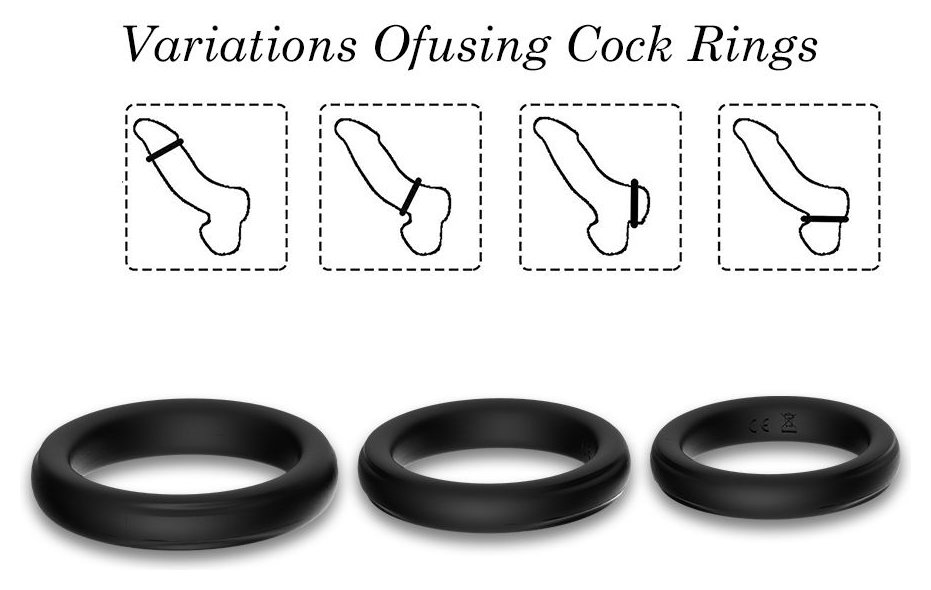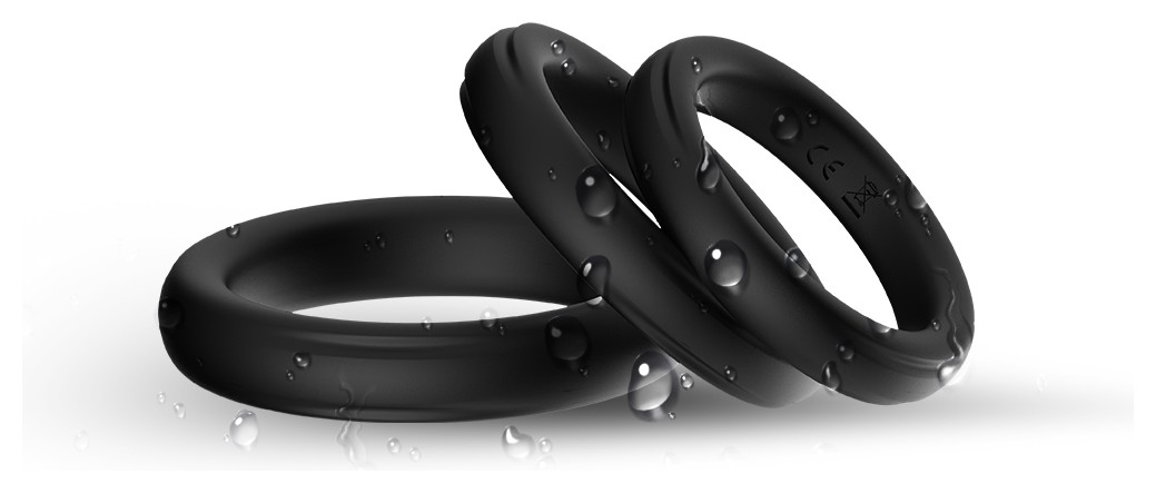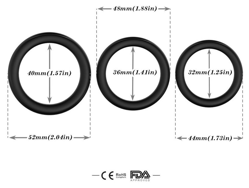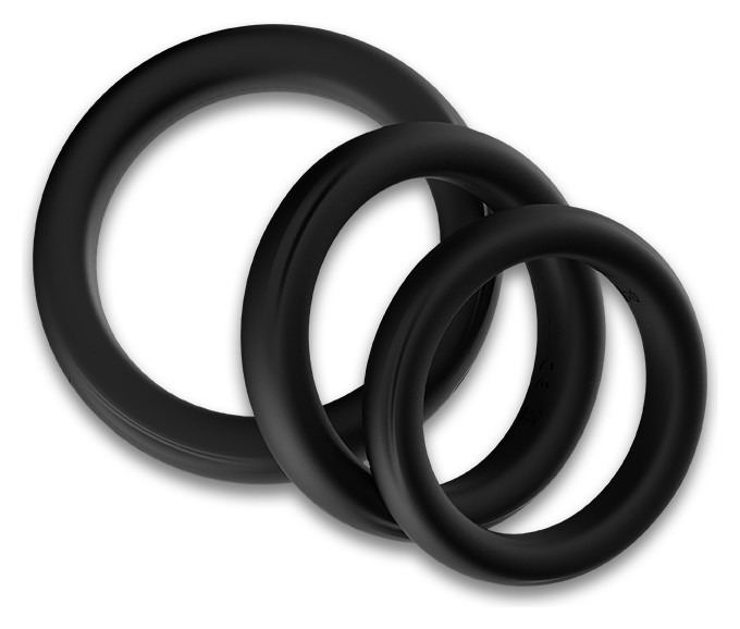 Набор из 3 черных эрекционных колец Stay Hard. Кольца имеют одинаковую форму, но разные размеры. Диаметр колец - 5,2, 4,8 и 4,4 см. Внутренний диаметр колец - 4, 3,6 и 3,2 см.