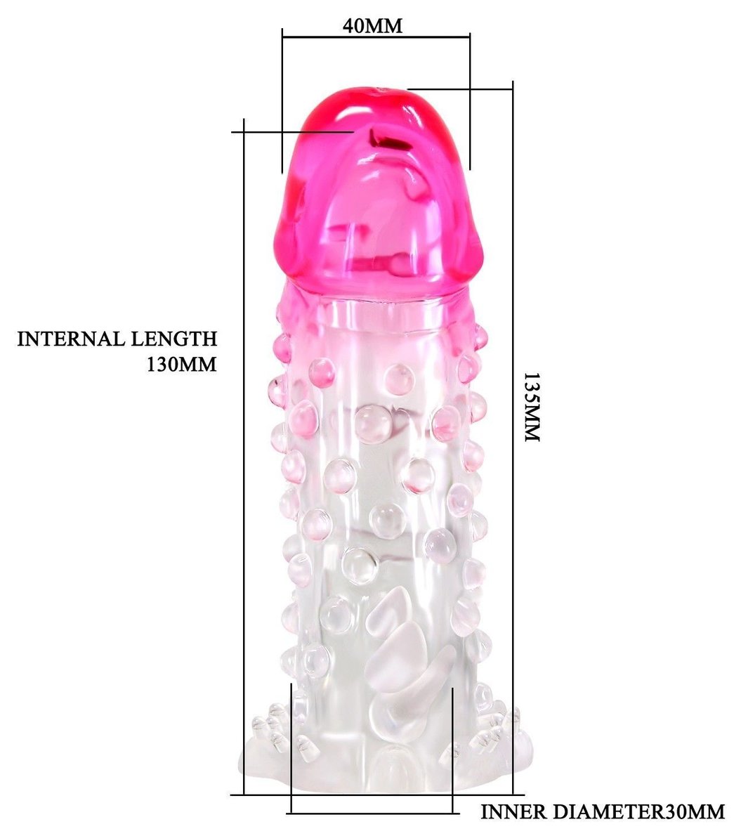 Прозрачно-розовая насадка на пенис Wilford - 13,5 см