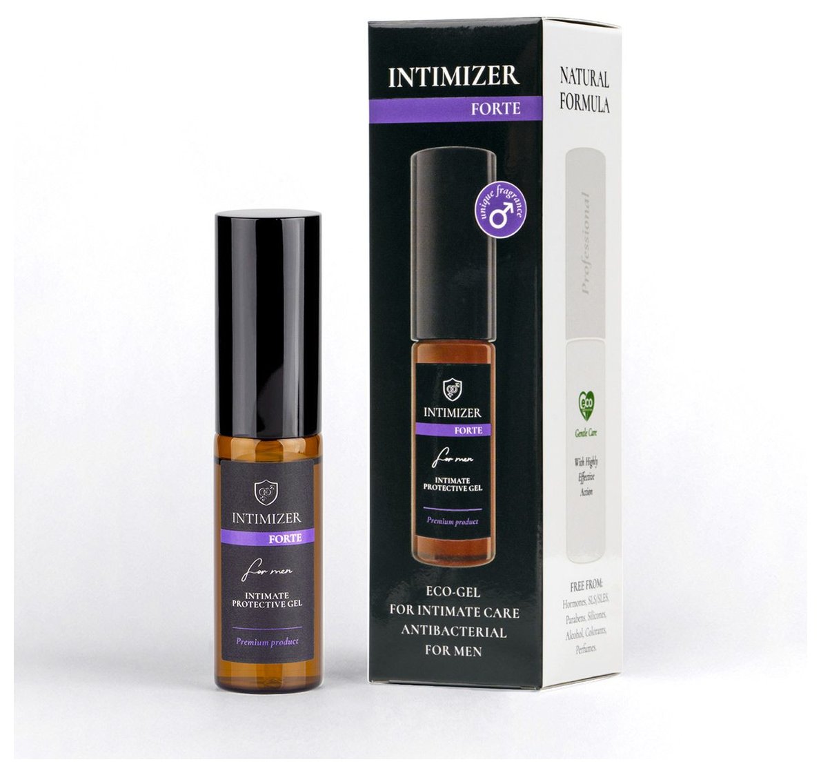 Гель для интимной гигиены мужской INTIMIZER – это насыщенный ухаживающий комплекс 8 в 1 для поддержания мужского интимного здоровья. Не имеет аналогов. Мощная концентрация натуральных компонентов работает как sos-средство от сухости, от запаха, как антибактериальная защита. Предотвращает воспалительные процессы и развитие инфекций. Увлажняющая формула на водной основе улучшает комфорт романтических отношений. Гель-уход INTIMIZER на 100% заменяет широкий арсенал привычных средств. Всё в одном! INTIMIZER FORTE – это усиленная высококонцентрированная формула широкого спектра действия, профессиональная линия средств бренда INTIMIZER. Выше антибактериальная активность – быстрое действие для более надежной защиты. Усиленный комплекс пребиотиков и постбиотиков последнего поколения. В 2 раза более интенсивное увлажняющее действие. Еще больше уверенности с двойной концентрацией премиального феромона ISO E Super. Идеален на каждый день для интимной гигиены мужчин. После нанесения не требует смывания, оказывая длительное защитное, ухаживающее и освежающее действия. Способствует ускоренному заживлению и укреплению стенок сосудов. Первая помощь при дискомфорте (покраснение, сухость, зуд, жжение) половых органов в период усиленных физических нагрузок и стресса для защиты микрофлоры при смене полового партнера при ослаблении иммунитета восстановление после приёма антибиотиков профилактика при посещении бассейнов и саун снятие раздражения после депиляции (бритья). Инновационная формула INTIMIZER для мужчин – научная разработка лаборатории НПК ЭВИПРО. Имеет свидетельство гос. регистрации. Одобрена урологами. Большое количество активных компонентов в легко усваиваемой форме обеспечивают широкий заявленный спектр действия: Smart частицы серебра Молочная кислота Prebiulin, Inulin, Woresana, Д-пантенол Aquaxyl, Fucogel Пальмария пальмата Биосахаридная смола Hydrovance Гидролат Календулы.