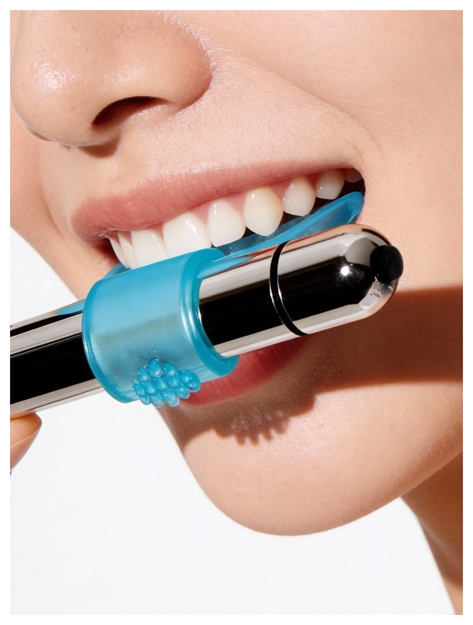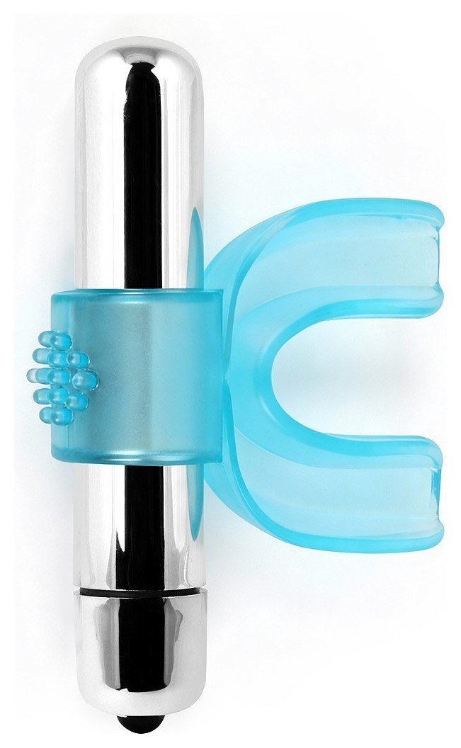 Голубая капа с вибропулей для оральных ласк