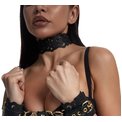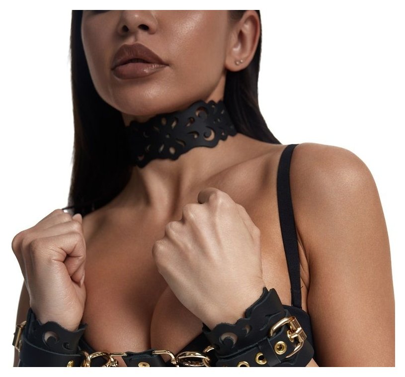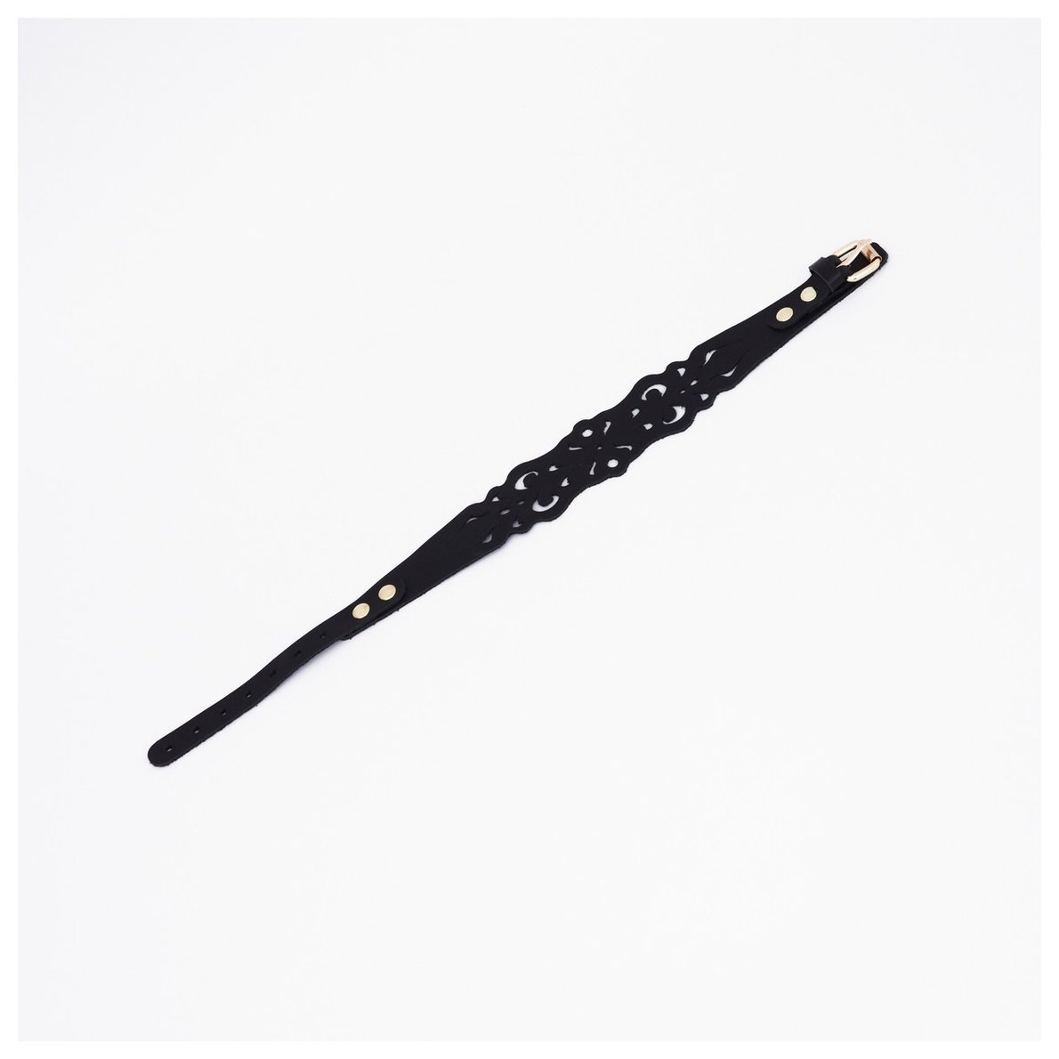 Чокер с узорным дизайном из натуральной кожи с золотой фурнитурой. Резные элементы придают атмосферу нежности, элегантности и подчеркивают красоту тела. Регулируется ремешком, поэтому прекрасно будет смотреться на любой шее. Доставляется в фирменной упаковке в виде брендированной деревянной подложки. Ширина основы - 5 см. Обхват - 32-40 см.