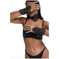 Черные фигурные наручники с золотистой фурнитурой