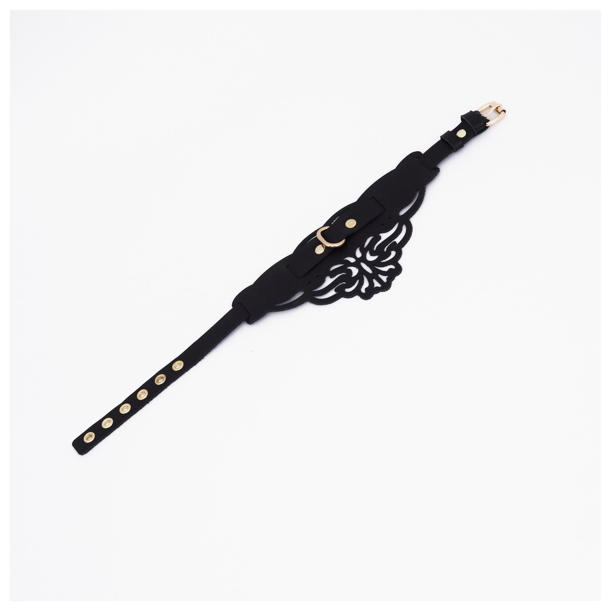 Фигурный набор для БДСМ-игр с узорами и золотистой фурнитурой