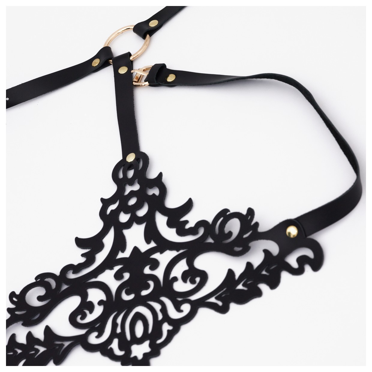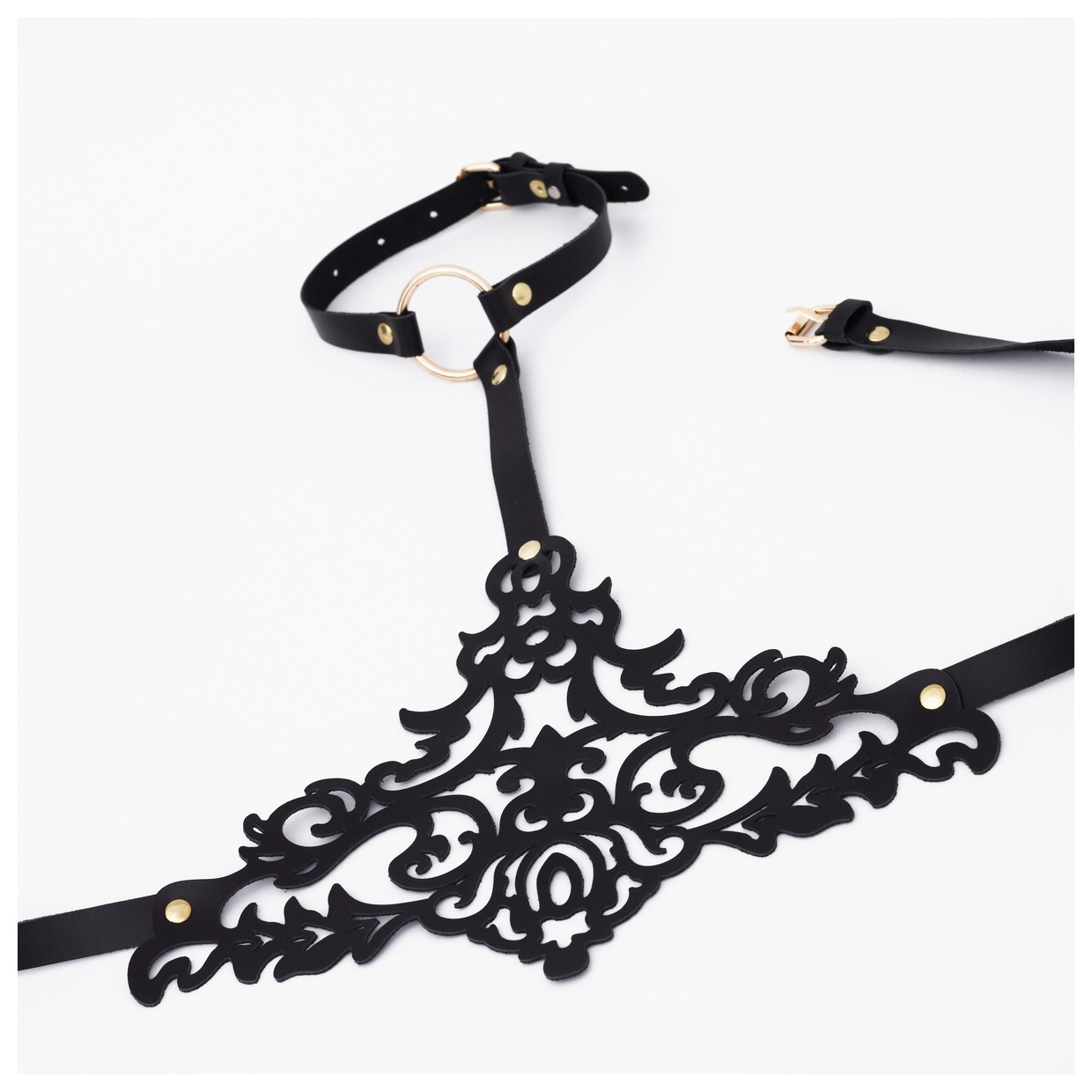 Черная резная портупея с золотистой фурнитурой