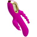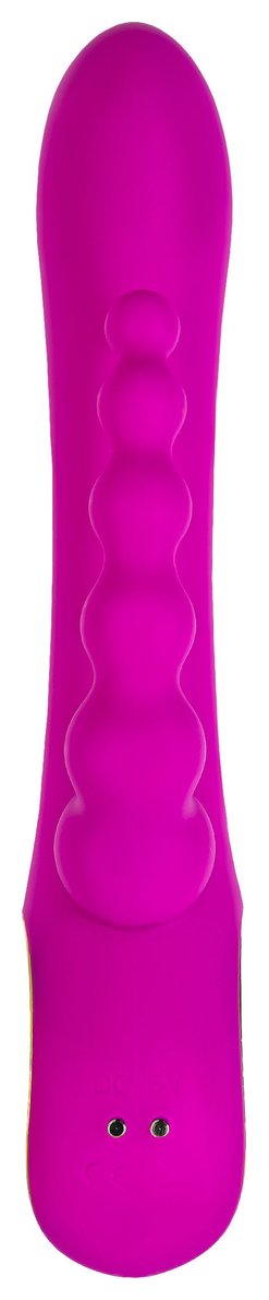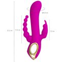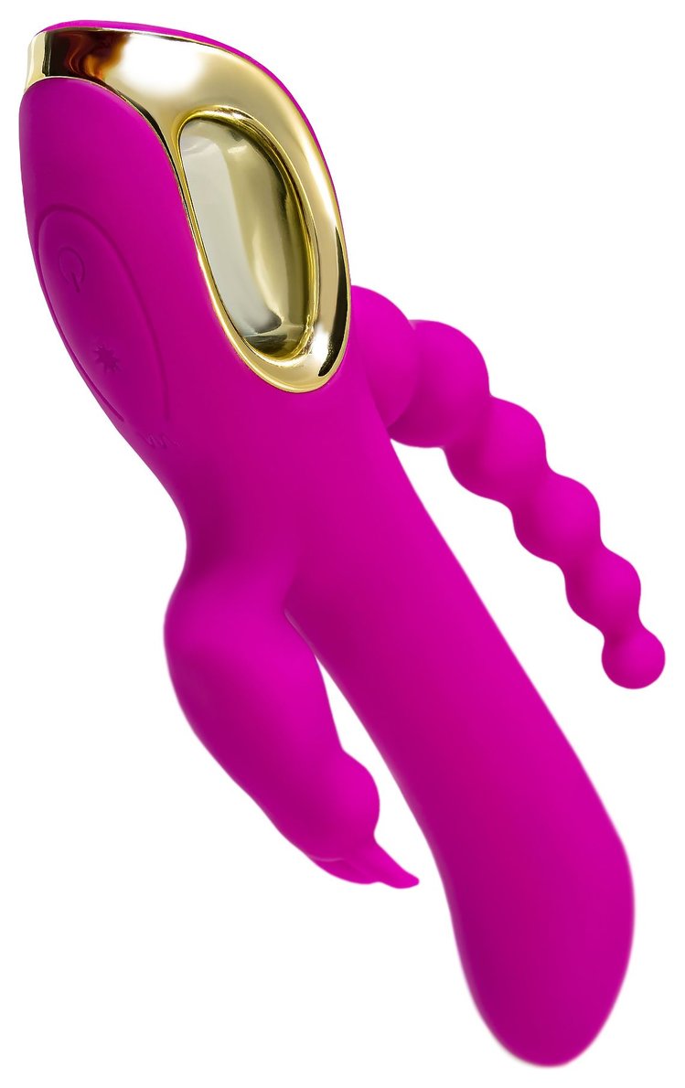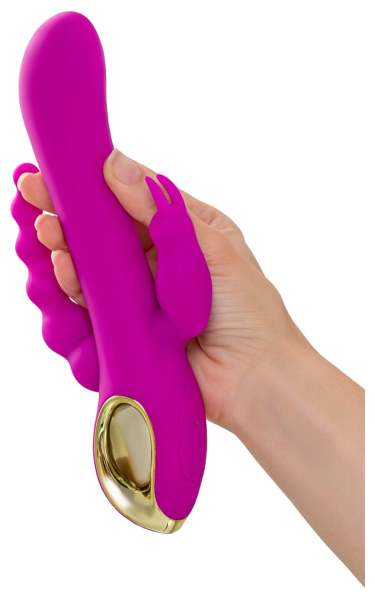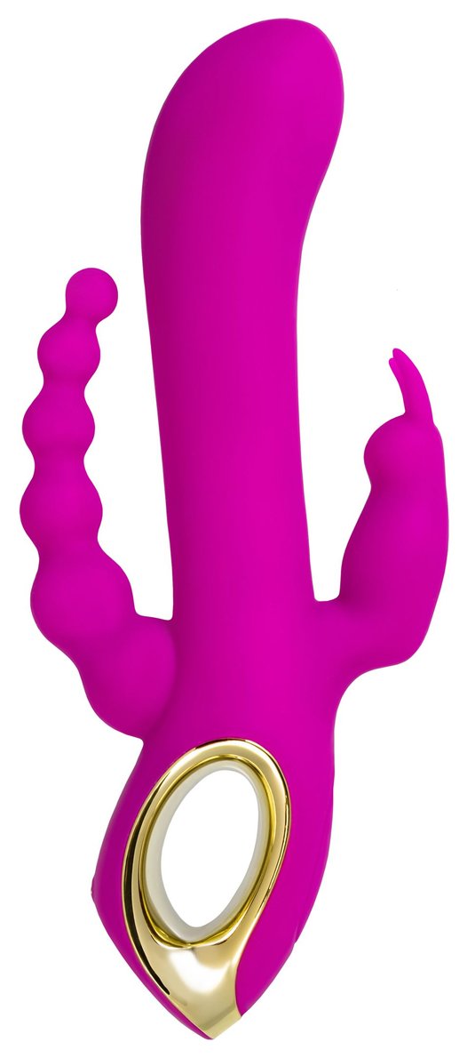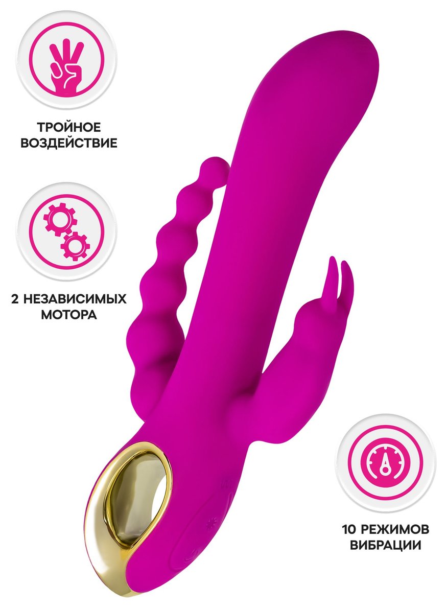 Тройной вибратор Trinny охватит сразу все возможные зоны удовольствия. Два мотора заставят трепетать все ваши внутренние эрогенные точки. Слегка загнутая головка найдет точку G, а анальный отросток очень легко ввести благодаря его постепенному расширению. Милые ушки кролика дополнят ощущения и приведут к неизбежному оргазму. Вибратор управляется тремя кнопками: нижняя - включение/выключение, средняя - переключение режимов в отростках, верхняя - в основном вибраторе. Рабочая длина - 13 см. Длина анального отростка - 11 см.