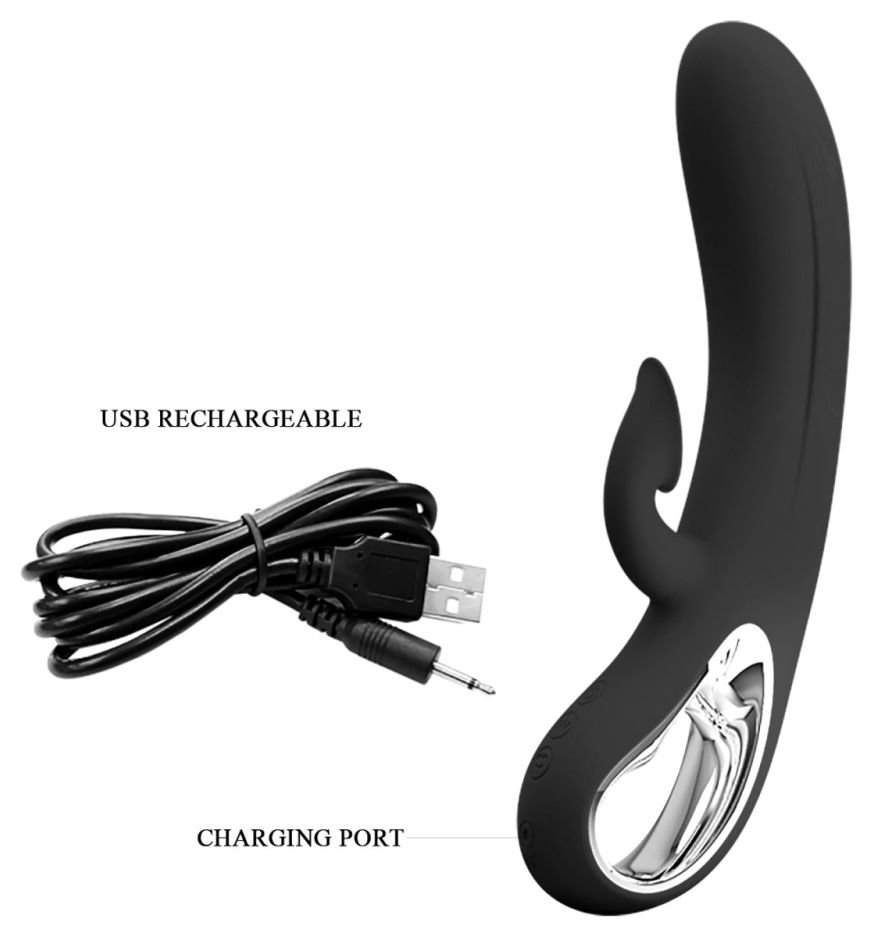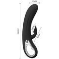 Многоскоростной вибратор с всасывающим клиторальным отростком и удобным основанием с отверстием. Немного расширяется кверху, с изогнутой головкой и немного рельефной поверхностью. Имеет 12 режимов вибрации и всасывания, которые переключаются с помощь кнопок у основания игрушки.