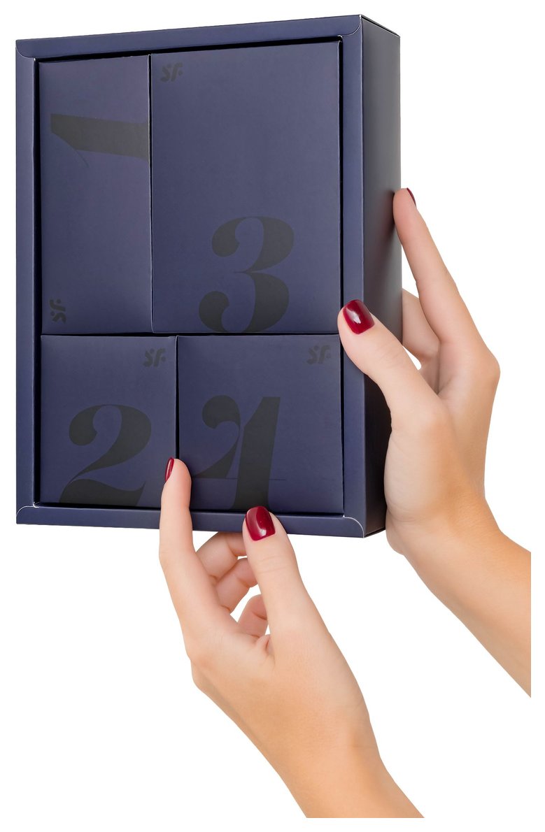 Satisfyer Advent Box – это набор для интимных радостей, который сделает ваше ожидание праздников особенно приятным! Внутри вы найдете разнообразные девайсы от знаменитого немецкого бренда Satisfyer, которые принесут вам невероятное удовольствие. С этим набором вы сможете погрузиться в мир новых сексуальных приключений и испытать незабываемые ощущения. Включайте свою любопытство и фантазию, и отправляйтесь в увлекательное путешествие. В первой коробке вы найдете чулки черного цвета с имитацией пояса Penthouse No Excuses. Это эротический аксессуар, который сделает любой день особенным. Их эластичный материал подходит на любую фигуру, обеспечивая комфорт и идеальную посадку. Мелкая сеточка и геометрические узоры соблазнительно подчеркивают формы тела, создавая сексуальный образ. Имитация пажей пояса визуально делает ноги бесконечно длинными, придавая неповторимый шарм и элегантность. Носите эти чулки как самостоятельный элемент, чтобы подчеркнуть свою соблазнительность, или дополните ими свой образ на вечеринке. Сногсшибательный эффект гарантирован, разжигая пламя страсти в вас и вашем партнере. Во второй коробке вас ждет тканевый мешочек для хранения игрушек Satisfyer. Этот стильный и удобный мешочек в прекрасном лавандовом цвете будет служить безопасным и гигиеничным местом для хранения ваших сокровищ. Его практичность и эстетическая привлекательность делают его идеальным аксессуаром для всех любителей красоты и удовольствия. Больше не нужно беспокоиться о том, где хранить свои игрушки - теперь у вас есть специальное место, которое подчеркивает вашу страсть к сексуальным приключениям. В третьей коробке набора вас ждет настоящая находка – стимулятор клитора Sugar Rush с вакуумной волновой стимуляцией Air Pulse. Этот удивительный интимный аксессуар обладает двумя мощными моторами, которые гарантируют незабываемые ощущения. С помощью 11 программ вакуумной волновой стимуляции и 12 программ вибрации вы сможете настроить интенсивность под свои предпочтения. Комбинируйте воздушную пульсацию и проникающие волны вибрации, чтобы достигать неземного блаженства каждый раз. Sugar Rush имеет игривый дизайн и компактный размер, что делает его идеальным выбором для начинающих. Кроме того, его дизайн скрывает назначение от непосвященных людей, так что вы можете быть уверены в своей конфиденциальности. Завершающий предмет в наборе – это мастурбатор Satisfyer Egg с технологией Hydro Active, которая обеспечивает невероятную стимуляцию пениса. Внутренняя текстура мастурбатора имитирует ощущение настоящей кожи, придавая вам чувственное возбуждение как по всей длине пениса, так и головке. Разнообразные формы и оттенки ощущений удивят и порадуют вас каждый раз. Одним из главных преимуществ мастурбатора Satisfyer Egg является его инновационная кибер-кожа, которая обеспечивает достаточное скольжение без необходимости добавления смазки. Это делает его идеальным выбором для соло-игр или для использования с партнером. Мастурбатор Satisfyer Egg также может быть использован партнерами обоего пола. Просто выверните его наизнанку и наденьте на ладонь для новых уровней удовольствия. Satisfyer Advent Box – это не только отличный способ порадовать себя, но и прекрасный подарок для вашего партнера или близких друзей. Подарите им незабываемые моменты радости и удовольствия, которые они смогут испы