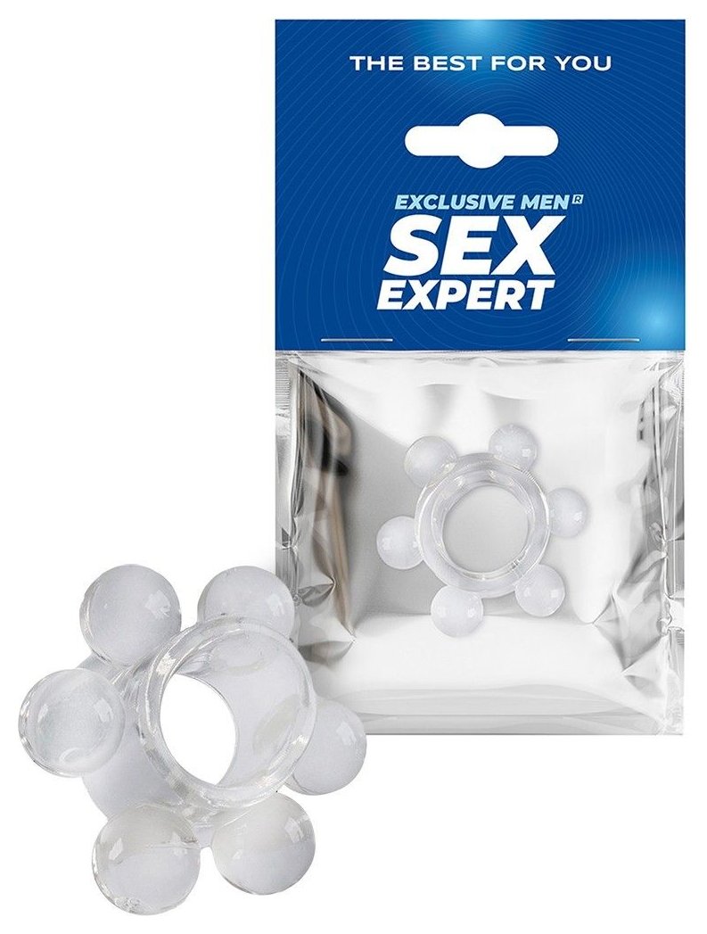 Прозрачное эрекционное кольцо с 6 стимулирующими шариками