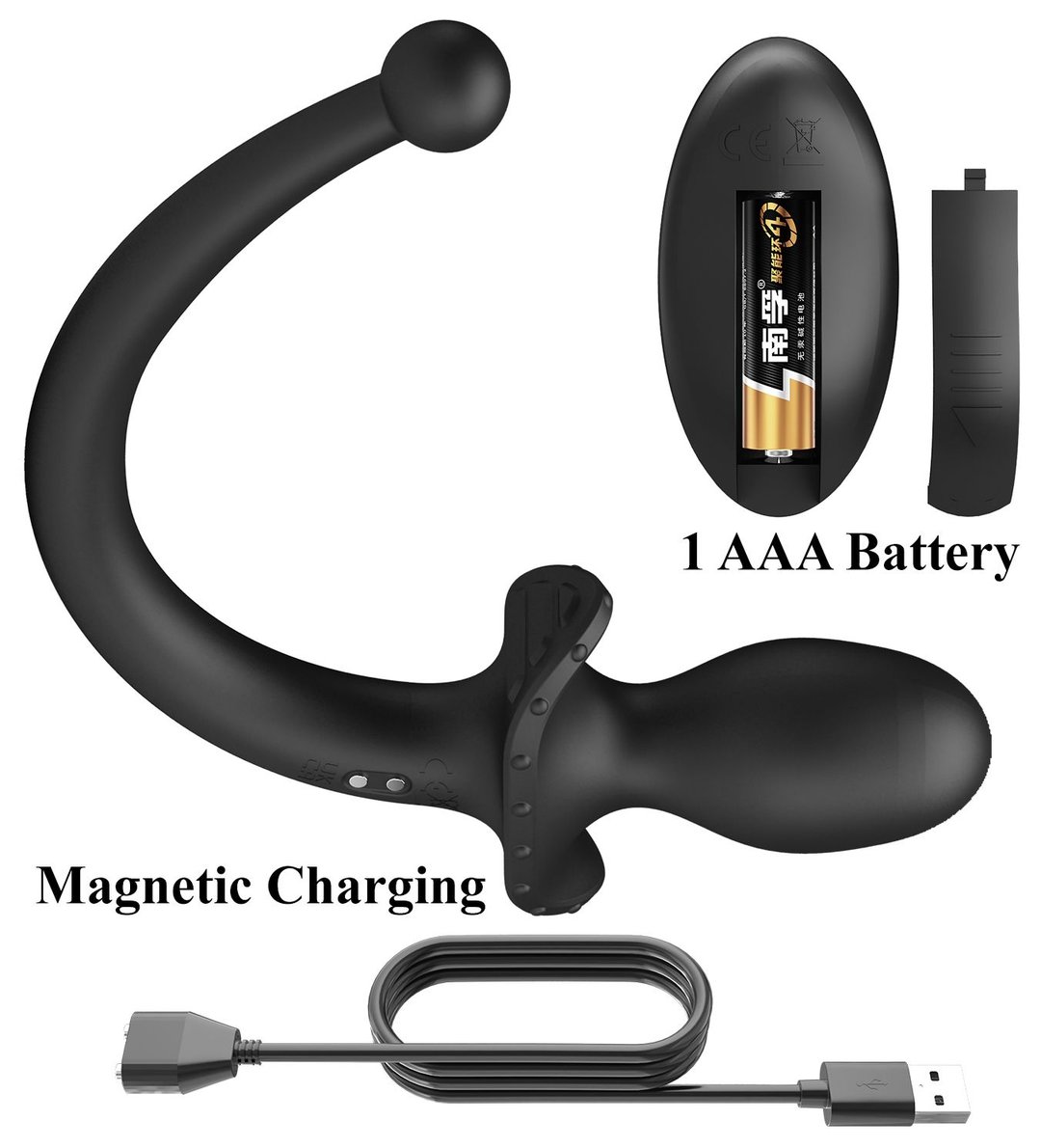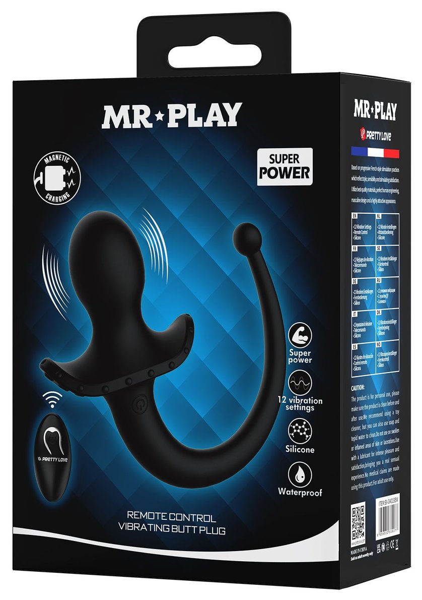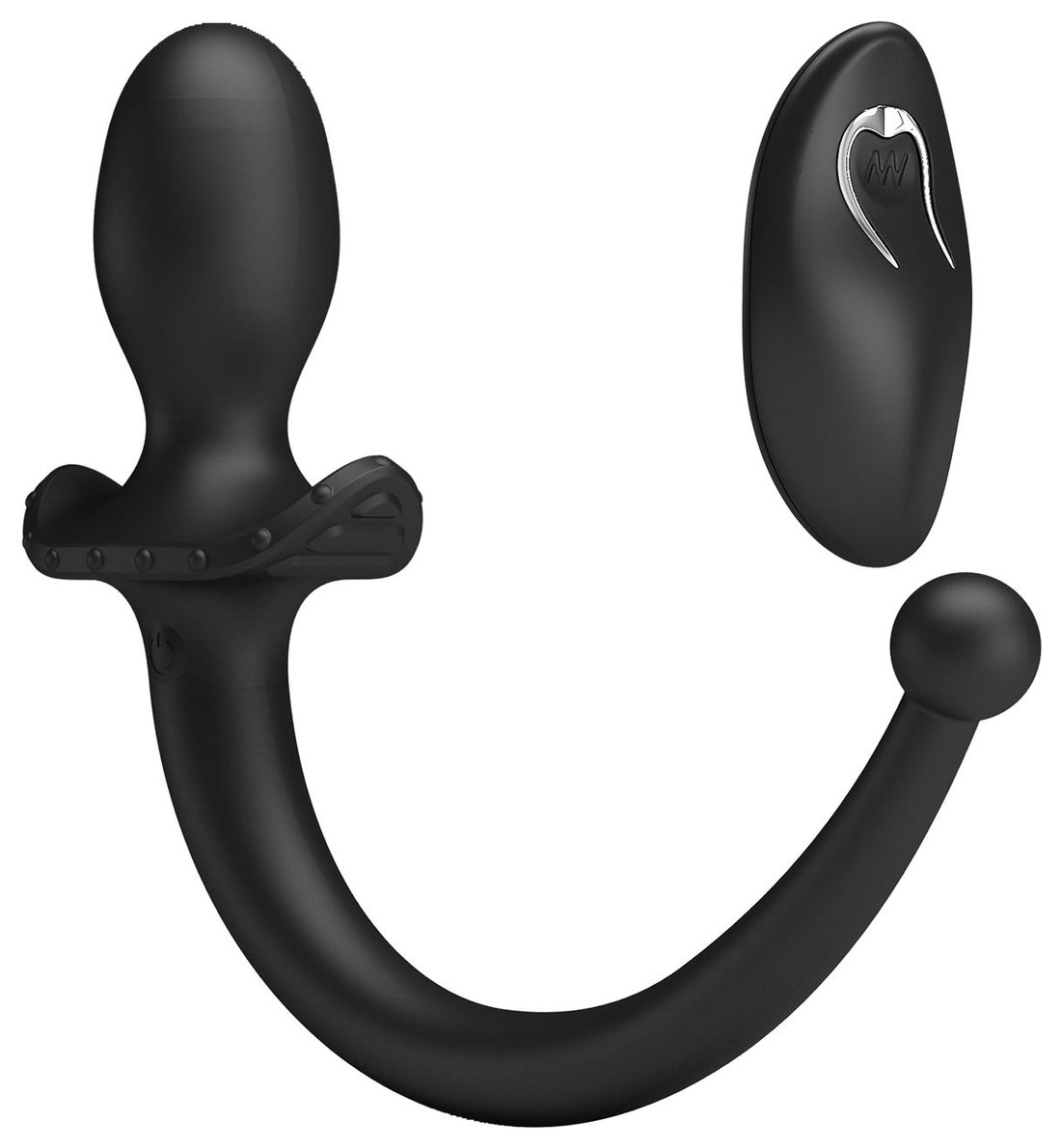 Черная анальная вибропробка с хвостом и пультом ДУ. Имеет 12 режимов вибрации и полностью водонепроницаемый корпус. Рабочая длина - 6,3 см.